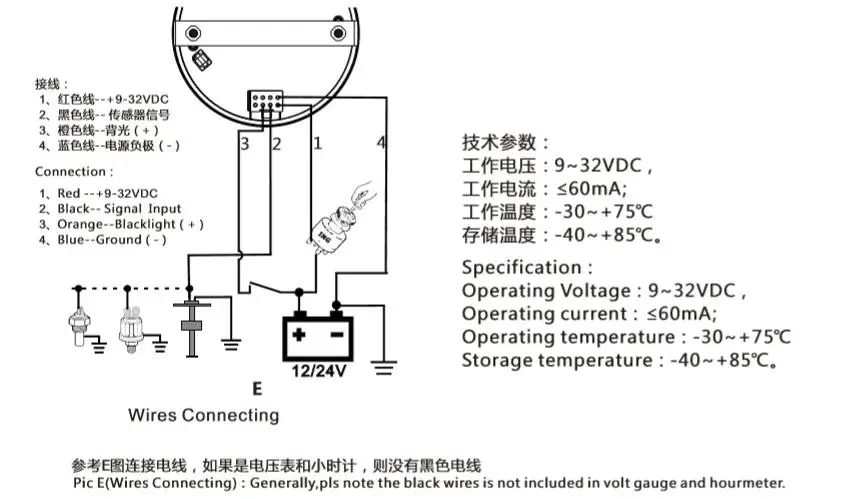 Подключение: красный-аккумулятор (+ 9-32VDC) синий-аккумулятор (-) черный-сигнал, оранжевый-подсветка (+ 9-32VDC)