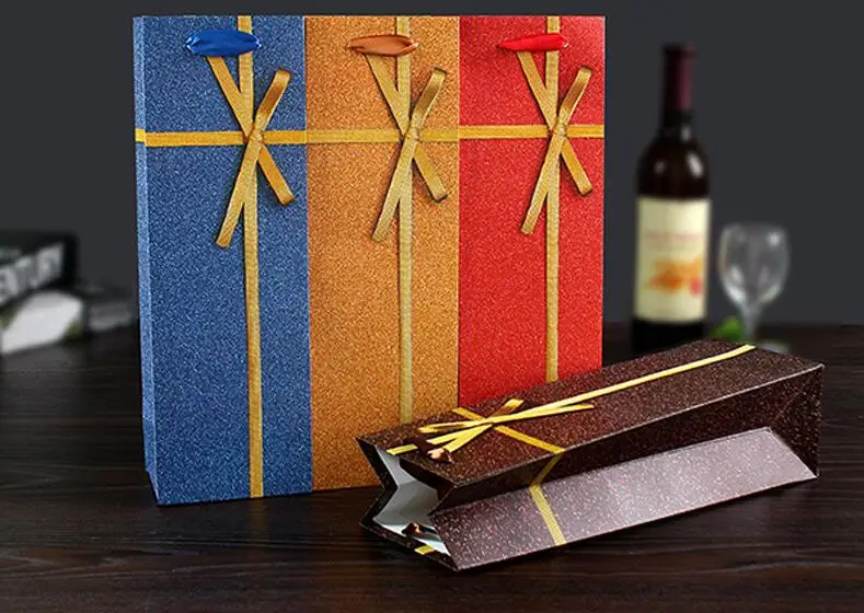 Бумага мешок бутылки вина перевозчика фестиваль вечерние подарка ручки ленты