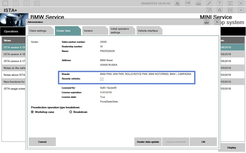 Версия программного обеспечения: V12-2020ISTA-D: 42638ISTA-P:3.67.1