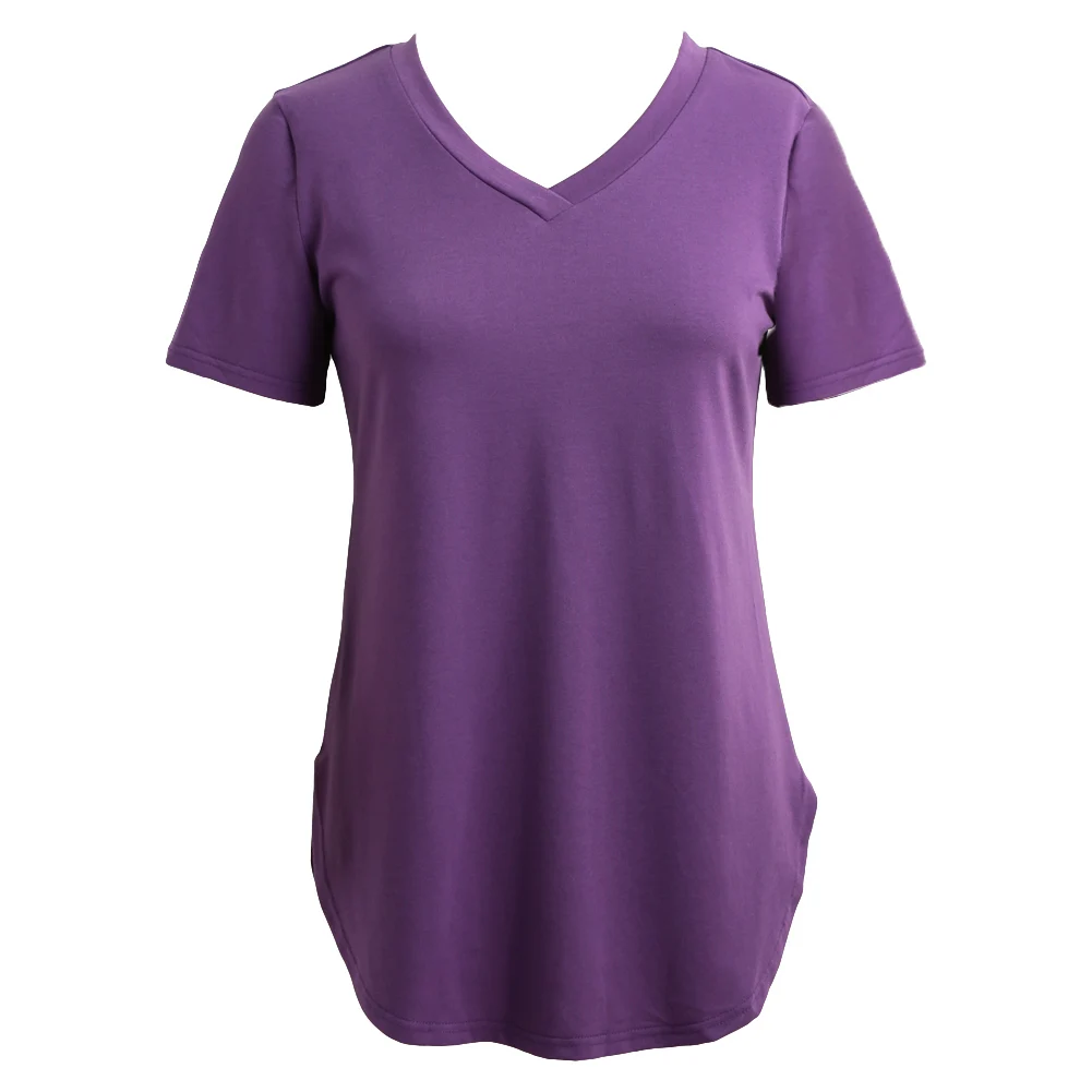 Изготовленная из мягкой ткани на ощупь, эта однотонная модель выполнена с v-образным вырезом, круглым подолом и удлиненной длиной. Идеально подходит для беспошлинной одежды.