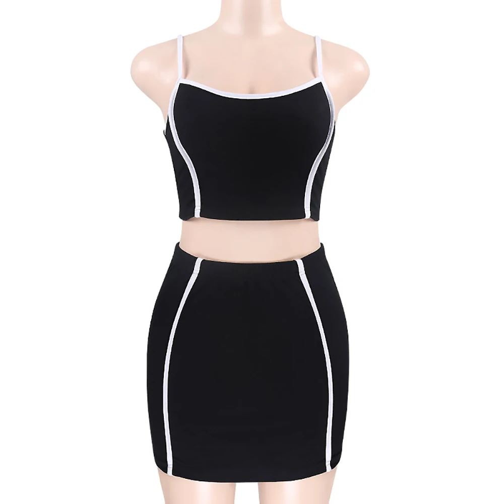 Женский комплект из двух предметов, летний женский комплект, сексуальный укороченный Топ без бретелек и эластичная резинка на талии, юбка-карандаш, повседневный женский спортивный костюм, костюмы