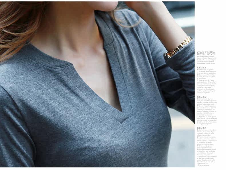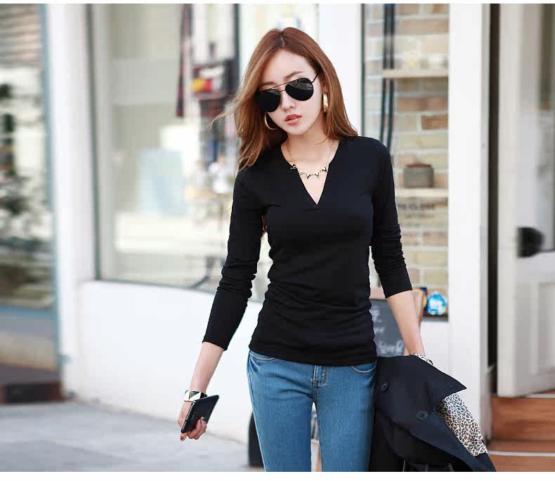 Женская футболка OUMOWEI новинка с V-образным вырезом и длинными рукавами одежда