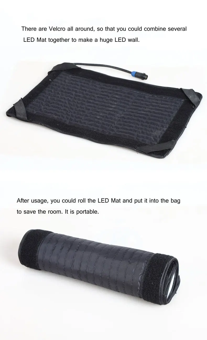 Новый рулонный гибкий светодиодный светильник разработан с новейшей технологией светодиодный для выполнения рулонного и гибкого движения Толщина всего 10 мм. Рулон-Flex поставляется в размере 61x46 см, чтобы цель для всех видов съемок И микросъемки. Она удобна светильник вес и легко носить с собой повсюду, который отлично подходит для того, чтобы использовать в качестве без солнца светильник отражатель Или как заполняющий светильник. С помощью дополнительного зажима пользователь может установить светодиодный светильник в рулоне на подставку под светильник Для использования в качестве светодиодный панели.