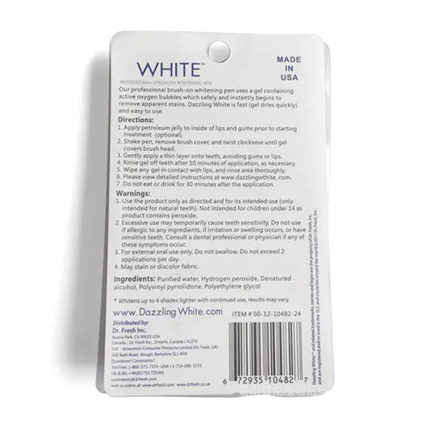 Хранение продукта: отбеливающие ручки должны храниться в холодильной камере, а не в холодильной камере-Срок годности 1 год, холодное хранение может храниться в течение 2 лет, пожалуйста, не размещайте в условиях высокой температуры в течение длительного времени. Место для детей не может касаться места, не использовать во время беременности или кормления грудью.