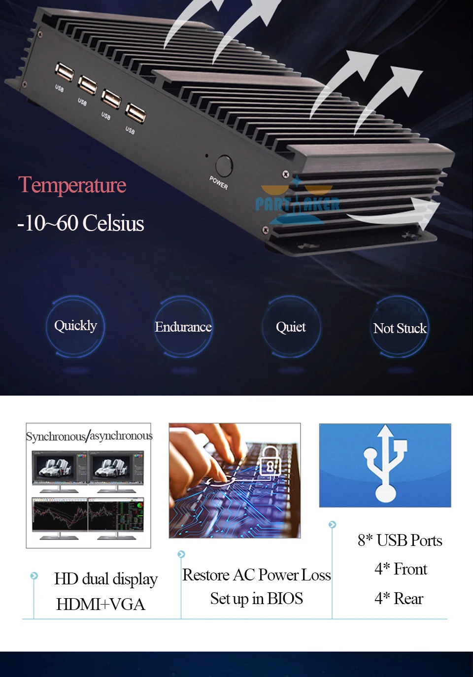 Порт ввода/вывода | 4 * USB 2,0, 4 * USB3.0, 4 * COM, 2 * RJ 45Lan порт гигабит, 1 * HDMI 1 * VGA 1 * микрофон, 1 * SPK, 1 * DC-IN Джек, 1 * Переключатель питания вкл/выкл |