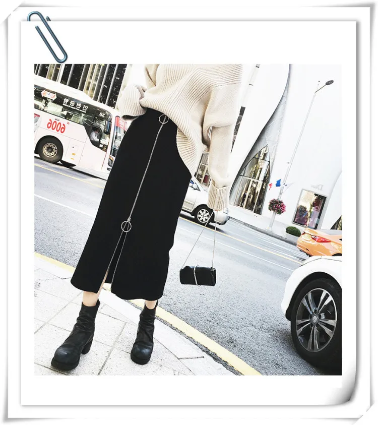 Женская облегающая юбка-карандаш, черная длинная привлекательная офисная облегающая юбка-карандаш с разрезом и высокой талией на молнии, Осень-зима 9611