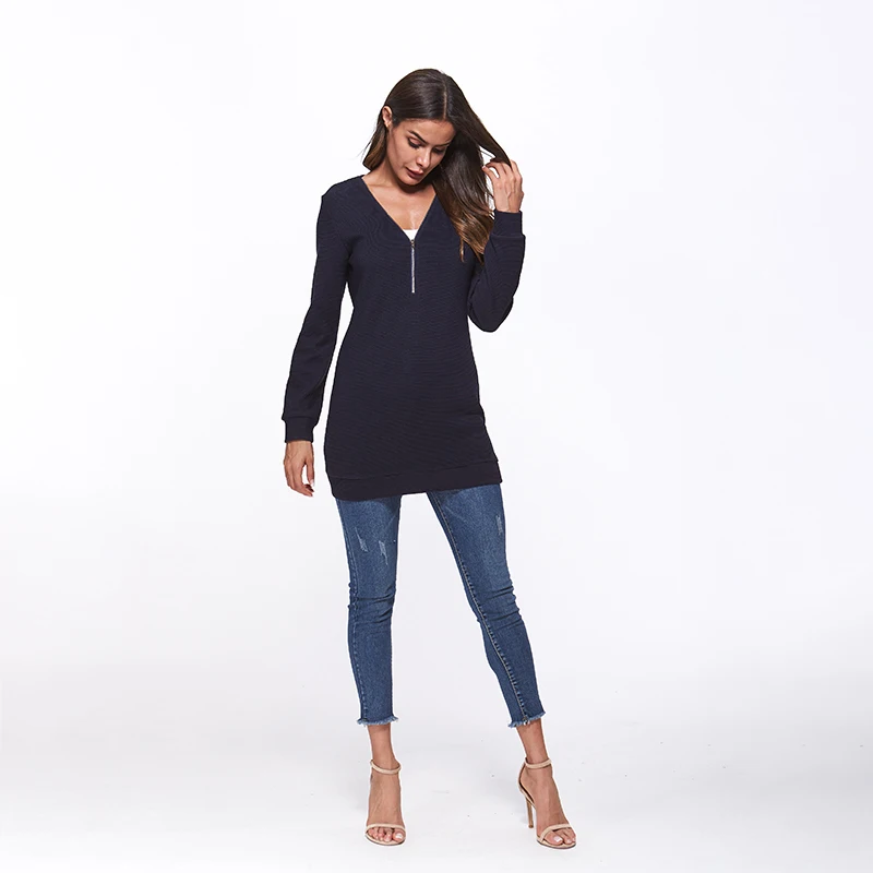 Romantichut на молнии с V-образным вырезом женщин свитер пуловеры осень зима 2018 длинный рукав вязаный свитер повседневные Однотонный женский джемпер Топы