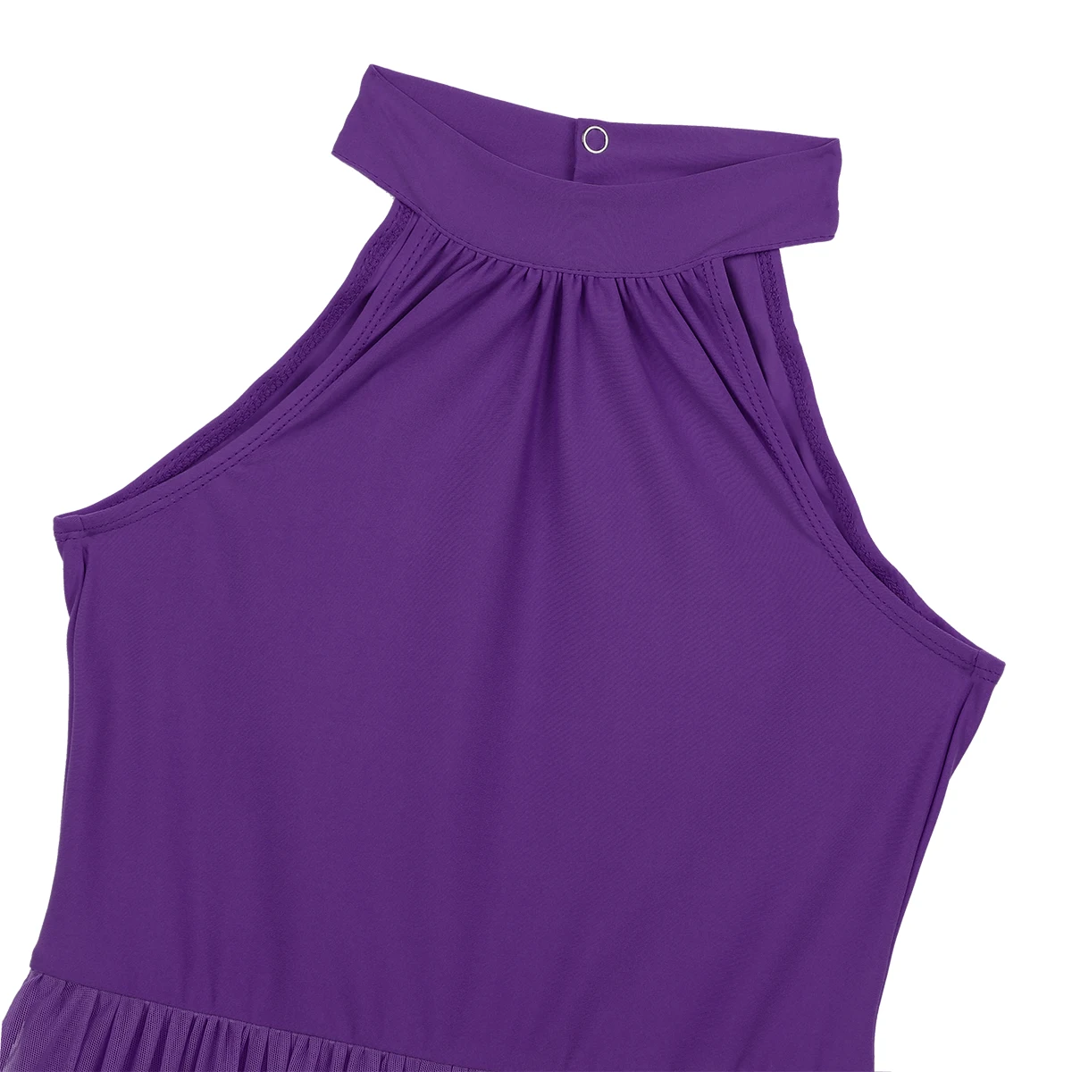 1 слой тянущегося сетчатого Макси-платья прикреплен вокруг талии, боковой Сплит-дизайн. Красивая танцевальная одежда для вашей девочки.