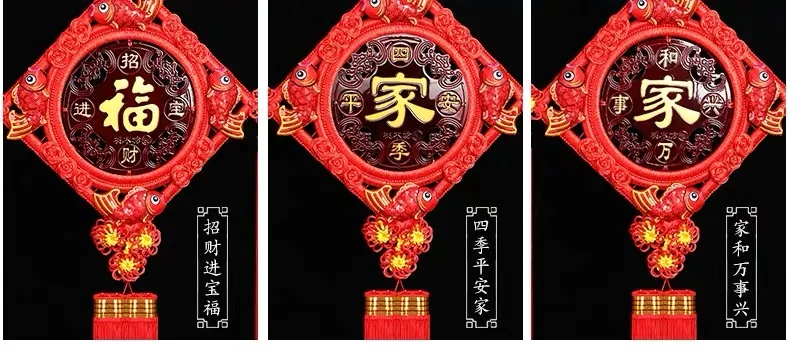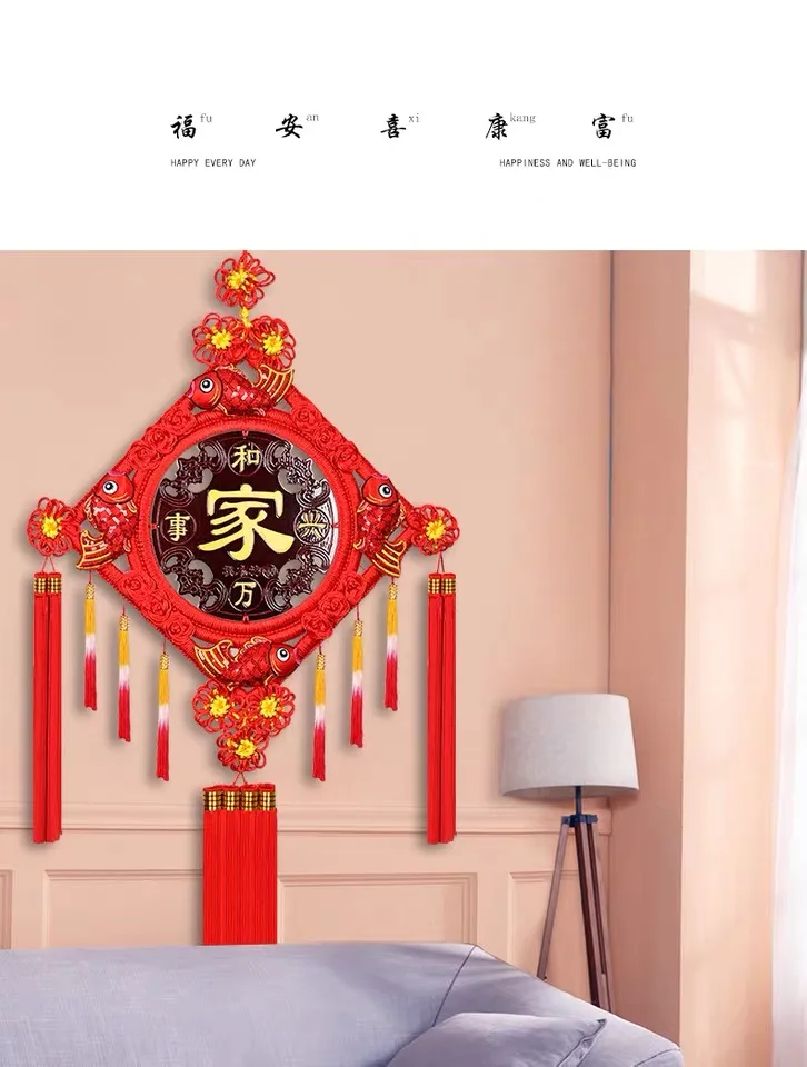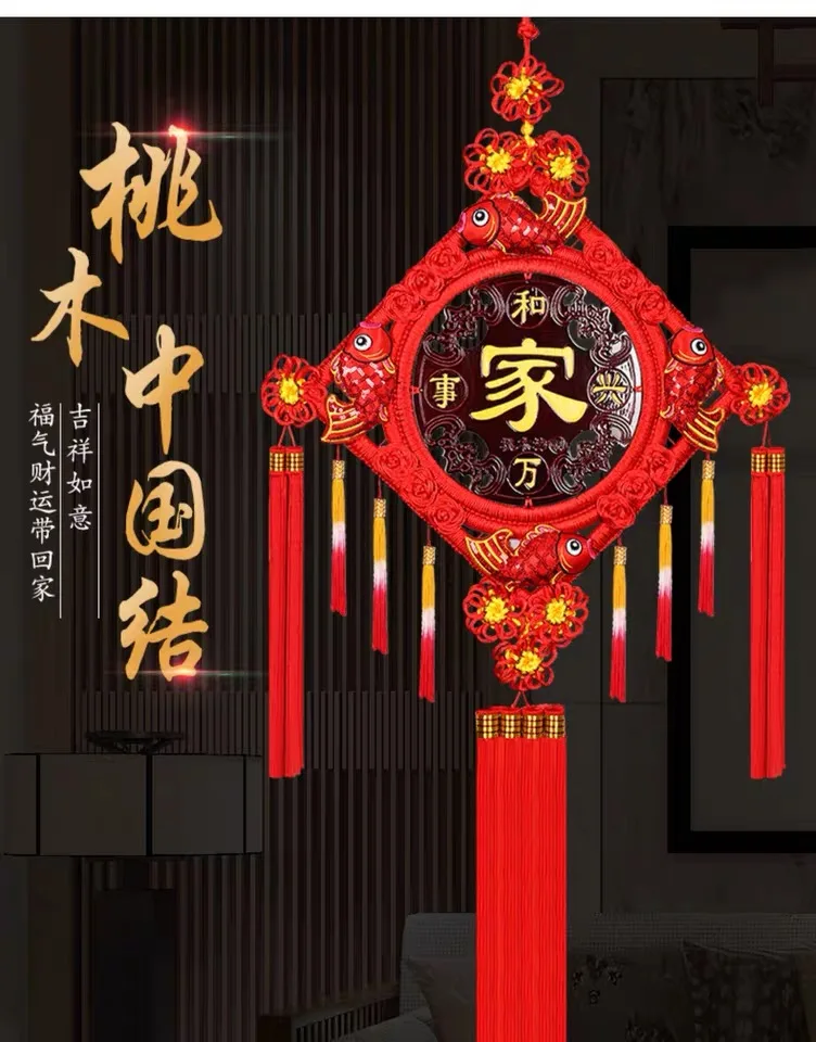 Новогодняя подвеска в виде китайского узла, висячие украшения, большая ручная работа, благословение слова, украшение для гостиной, народные подарки для рукоделия