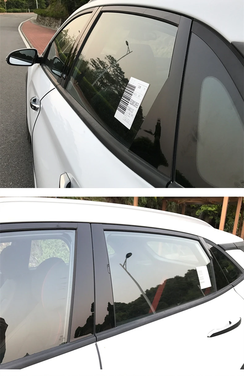 Отделка окна автомобиля BC колонна блестки мешалки покрытие наклейки наружное украшение авто аксессуары для Hyundai Kona Encino 2018 2019 Цвет: как на картинке Простая и быстрая установка, прилагается Автомобильная клейкая лента 3М. Посылка включает в себя:6 шт.
