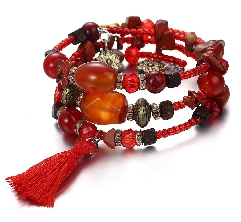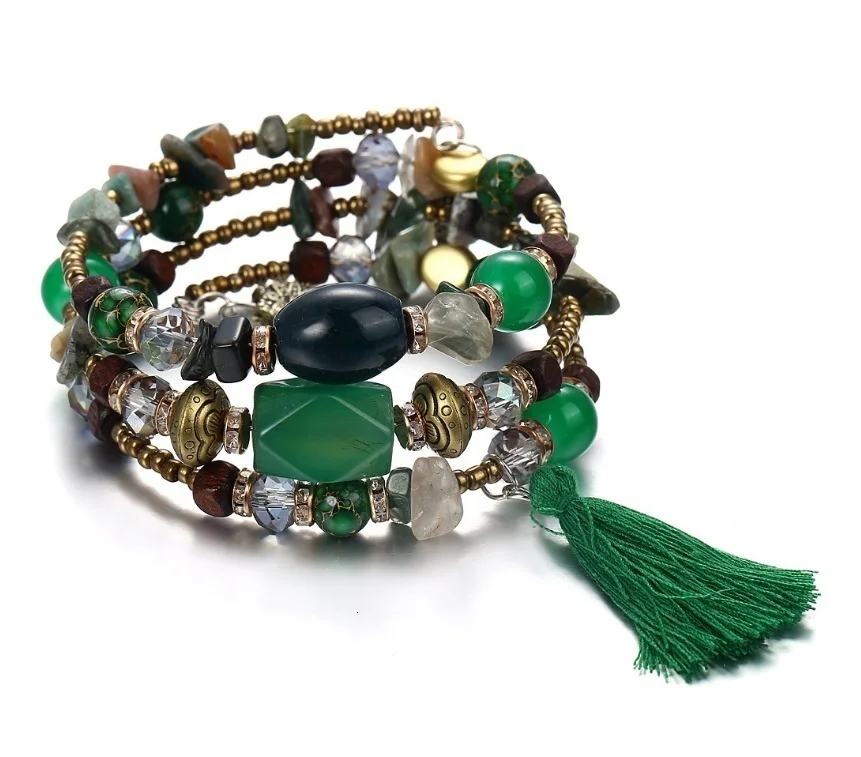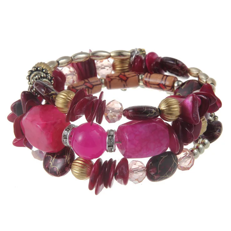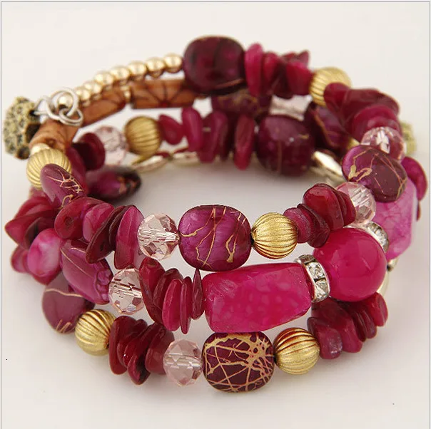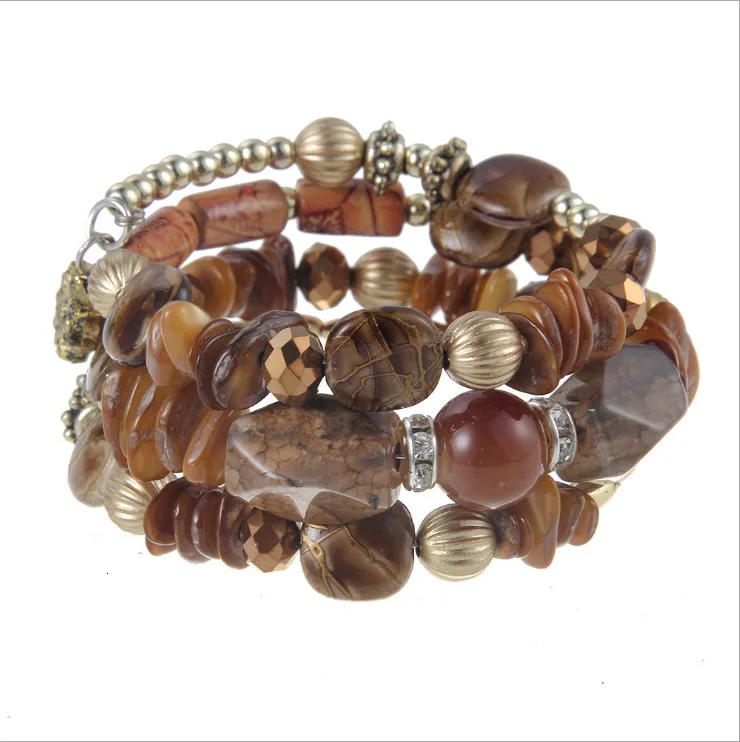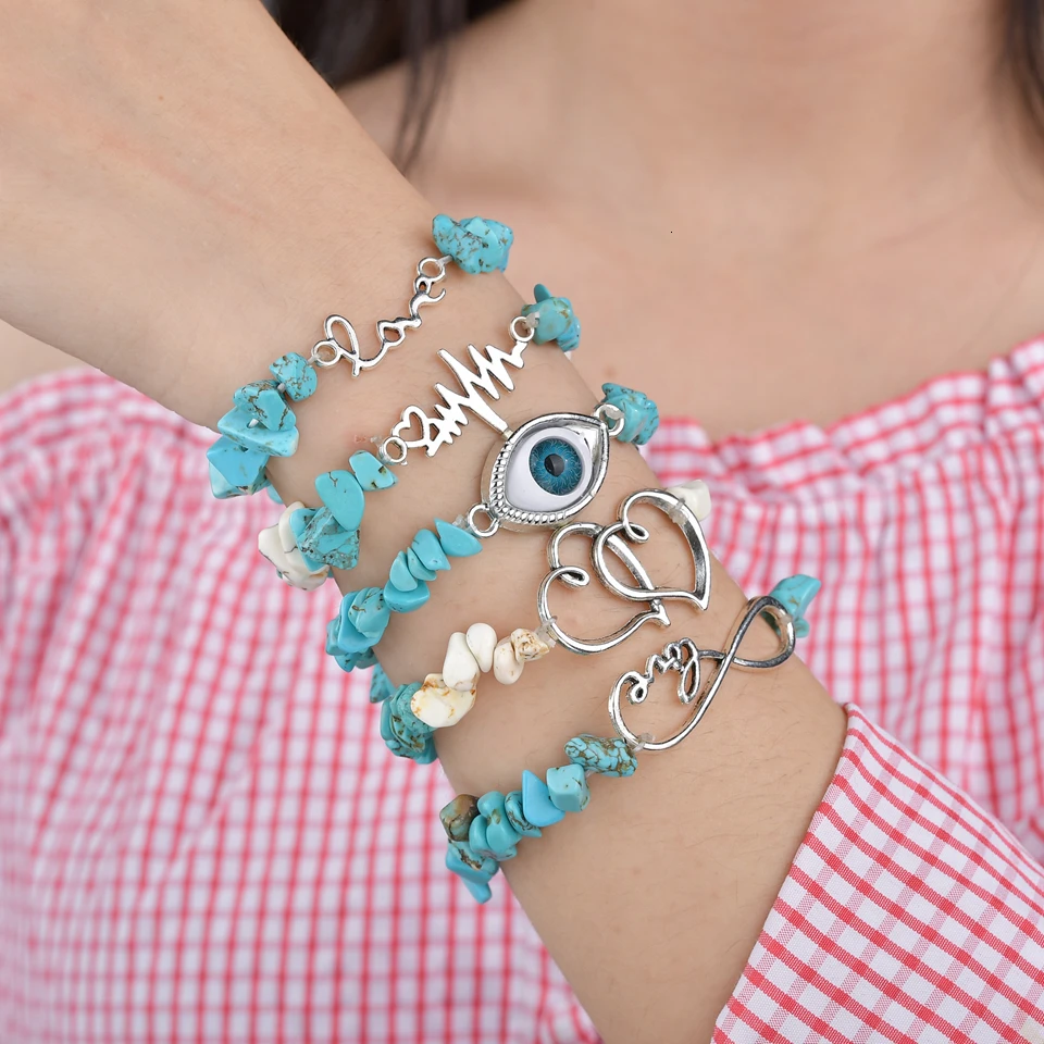 Трендовые Многослойные очаровательыне браслеты с бусинами из бирюзы для женщин Регулируемый Браслет из натурального камня и стекла