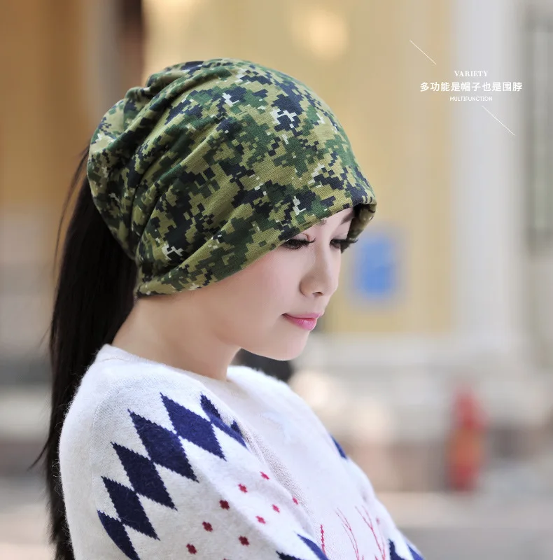 Весенне-осенние шапки для женщин кольцевой шарф многофункциональные камуфляжные шапочки шапка для мужчин Шапка-бини с конским хвостом шапка