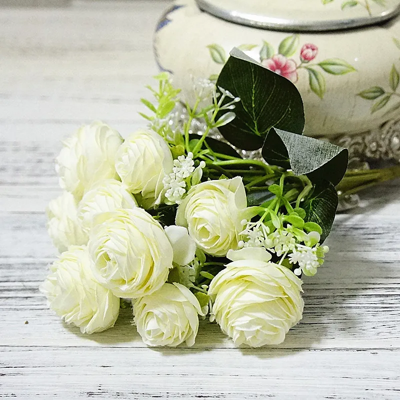 Корейский искусственный шелк 10 головок мини Камелия украшение для дома гостиной поддельные цветы Свадьба невесты держащий букет праздничный подарок