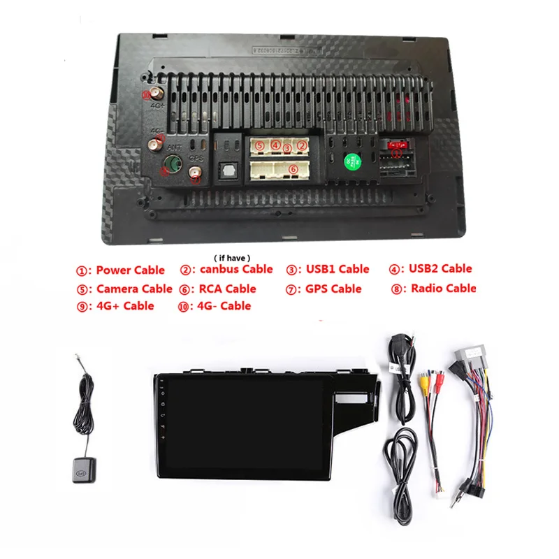 Посылка включает в себя: кабель питания, RCA-кабель, USB-кабель, gps-антенну, радиоантенну (разные машины, разные)