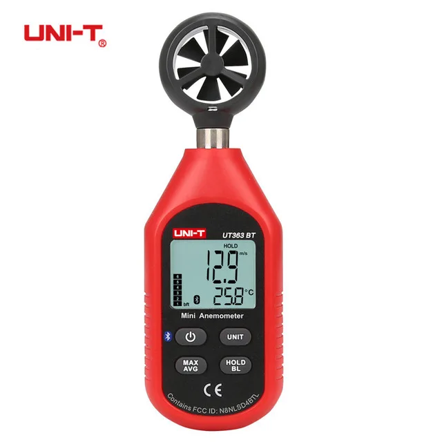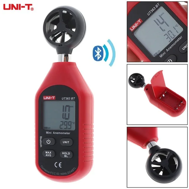 UT363 BT-это мини-скорость ветра и температура тестера. Свет устройство для снижения веса оснащен новейшей технологией магнитного зондирования, что может непосредственно отображать скорость воздушного потока на ЖК-дисплее. Функция Bluetooth добавлена для передачи данных и анализа на мобильное приложение, iENV, которые можно загрузить из Google Play или Apple Store.