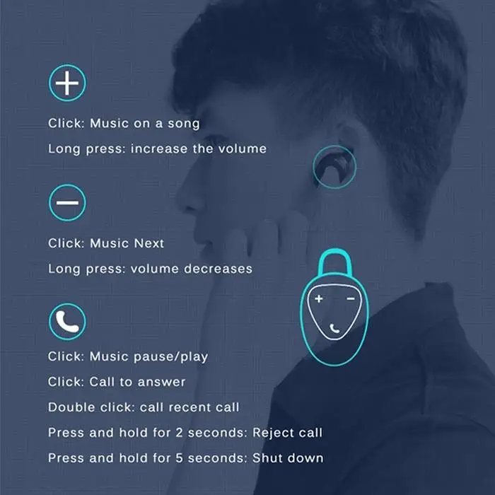 - Мини-наушники Bluetooth с зарядным устройством подходит для спорта.