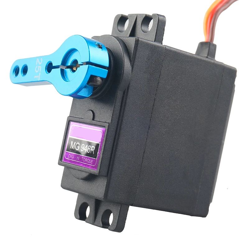 MG946R сервопривод для JR автомобиля RC модель вертолета робота Характеристика: 100% Новый бренд Модель: MG946R Материал: пластик и медь. Размеры: 41 мм x 20 мм x 43 мм. Крутящий момент: 10,5 кг/см (4,8 В), 13 кг/см (6В). Рабочее напряжение: 4,8-7,2 В. Рабочая скорость: 0. 20 сек/60 градусов (4,8 В); 0. 17 сек/60 градусов (6,0 В). Диапазон температур: 0 C-55 c Тип шестерни: все металлические шестерни. Ширина мертвой ленты: 5us. Источник питания: через внешний адаптер. Длина провода соединителя: 300 мм. Вес: около 55 г. Вес упаковки: около 66 г/единица Совместимый с большинством стандартных разъем приемника: Futaba, Hitec, Sanwa, GWS и т. Д. Отлично подходит для грузовиков, лодок, гоночных автомобилей, вертолетов и самолетов Упаковка включает: 1 X сервопривод MG946R (с аксессуарами) (как показано на фотографии)
