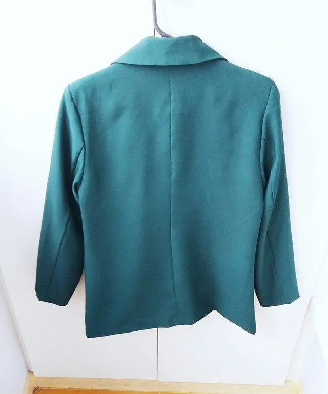Женский бархатный блейзер делового костюма темно зеленого цвета с брюками