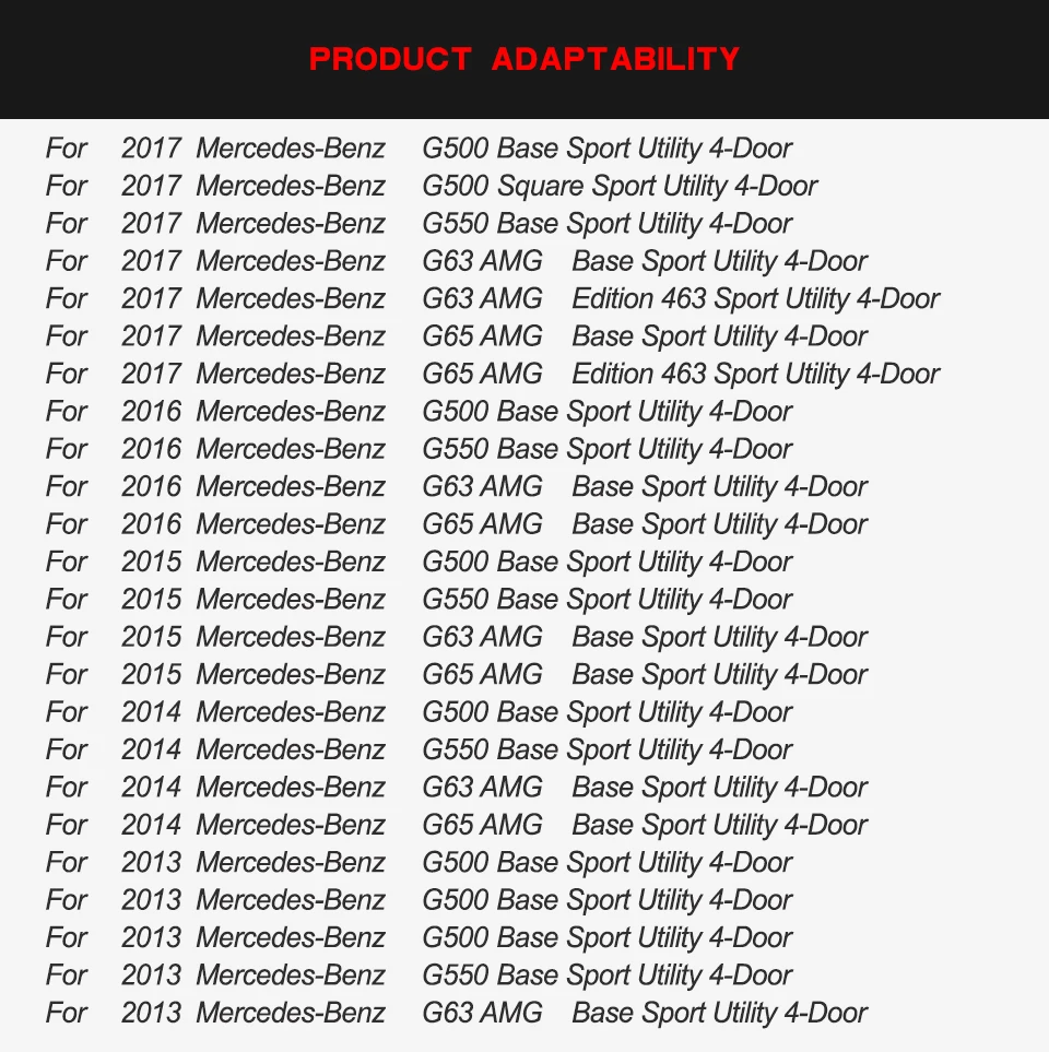 1. Приспособление: подходит дляMercedes-Benz G-Class G500 G63 AMG G65 AMG 2013 - 2017