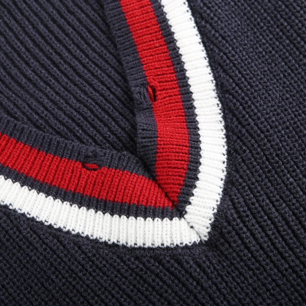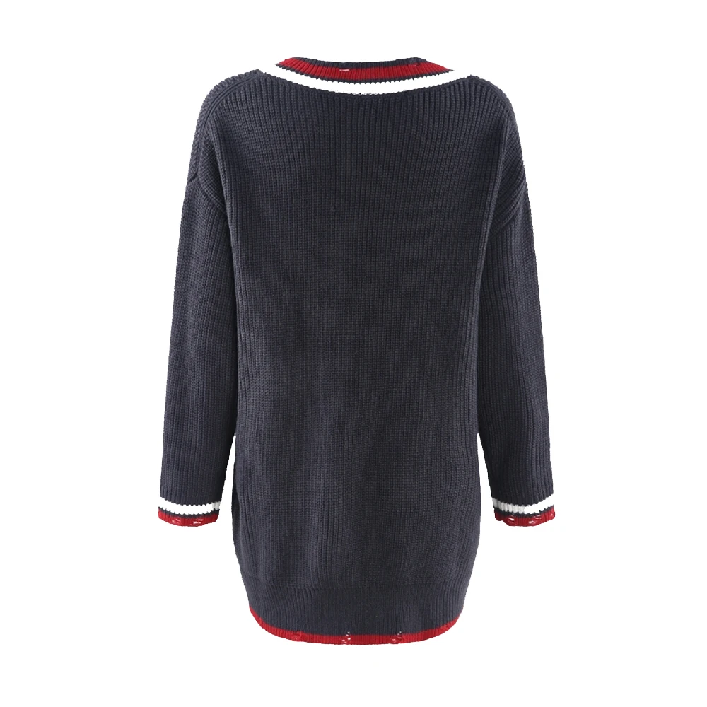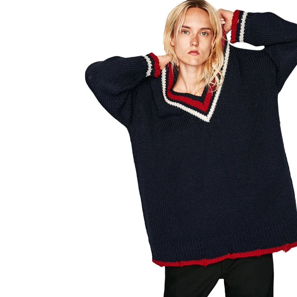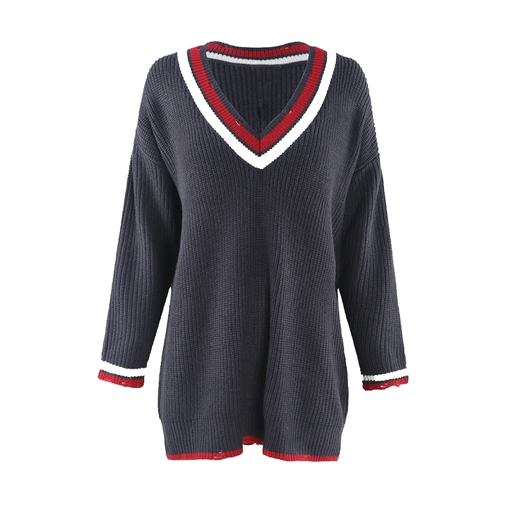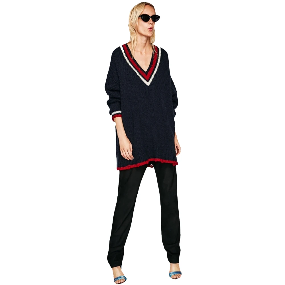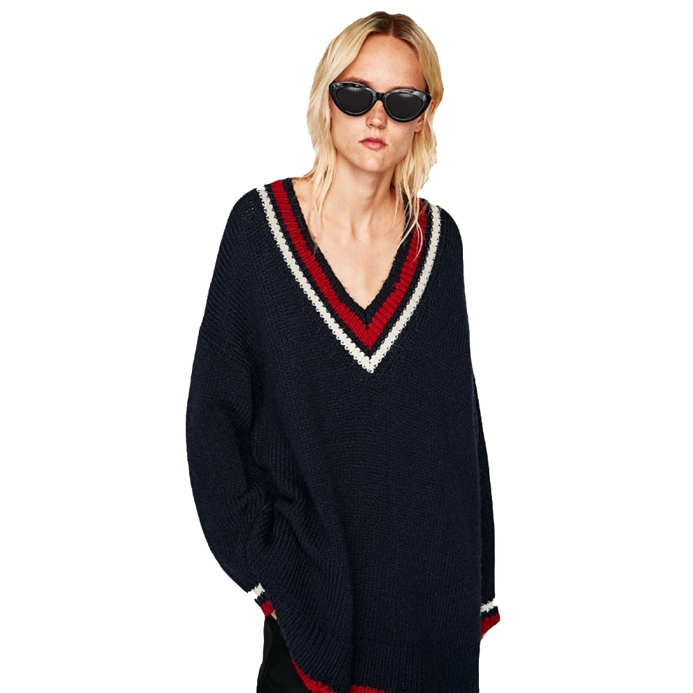 Женский вязаный свитер в европейском стиле с v-образным вырезом и длинными рукавами размера плюс, все соответствующие пуловеры темно-синего цвета TA02800112