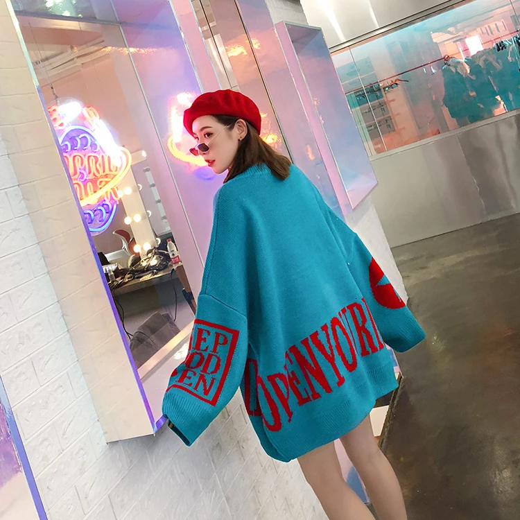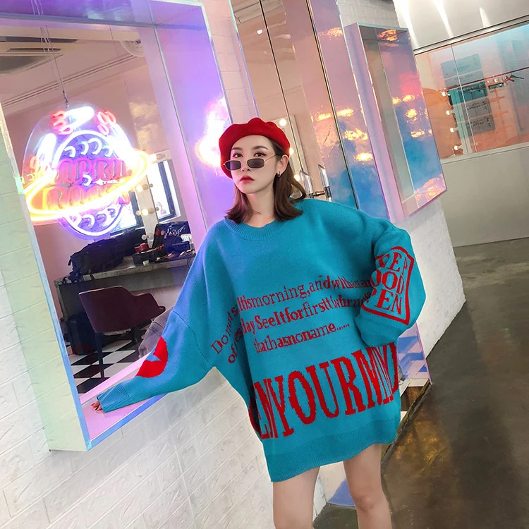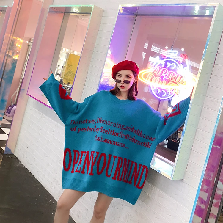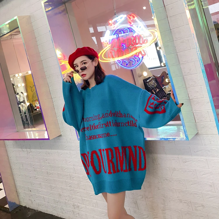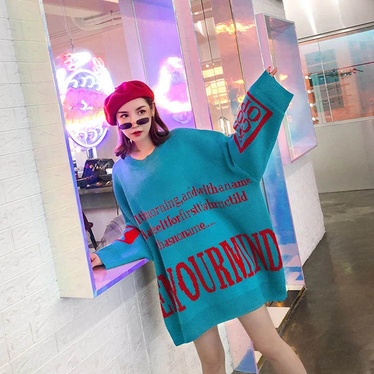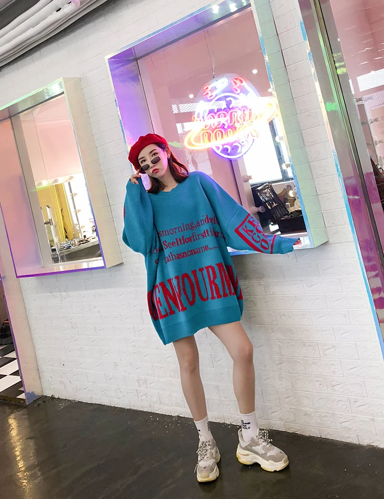 Vefadisa Women Loose Letter Pullover Sweater Dress 2018 Winter Women Knitted Batwing Shape Plus Size Sweater Dress DQ487
