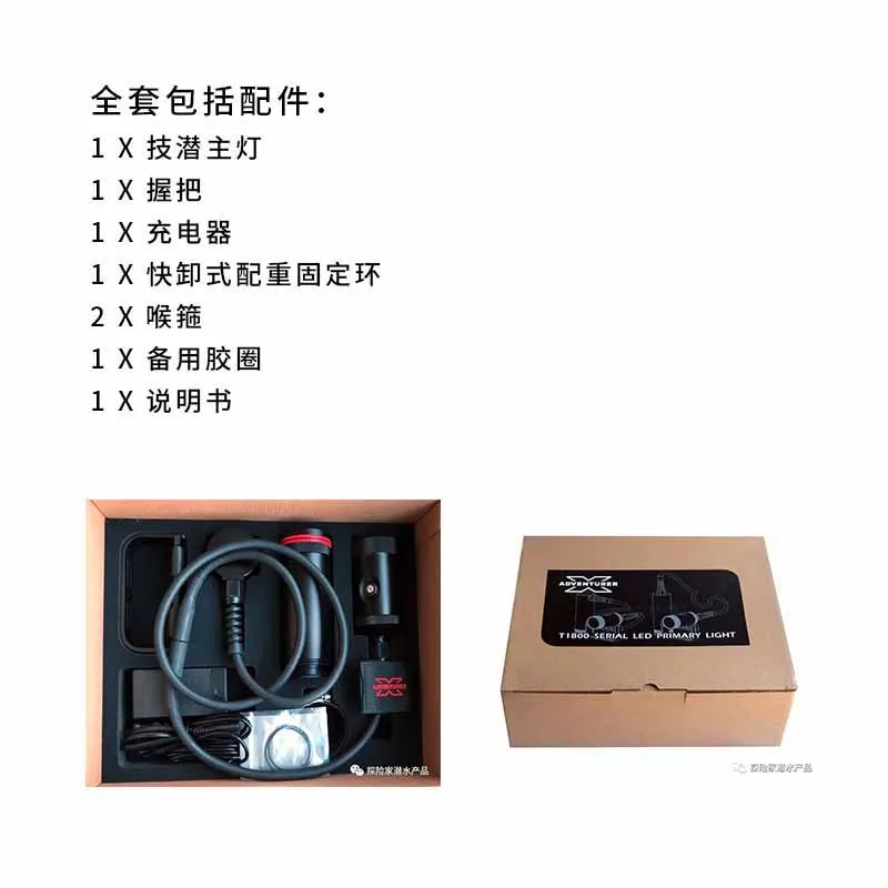 X-ADVENTURER T1800-это основной светодиодный светильник 1800 люмен 6 градусов для технического погружения, светильник, генерирующий высокую интенсивность, сфокусированный луч, потребляя при этом половину мощности 21 Вт HID светильник s. 6 часов работы, 3 уровня настройки яркости, встроенный индикатор уровня заряда батареи. Светильник имеет полностью регулируемую ручку, которая может быть установлена левой или правой рукой, поддерживает шнур E/O (опционально)