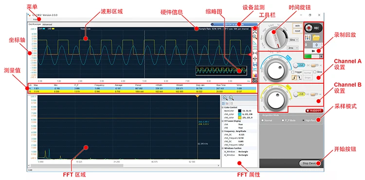 | БПФ частотной анализа | Кривая амплитудной частоты FFT отображается в реальном времени. |