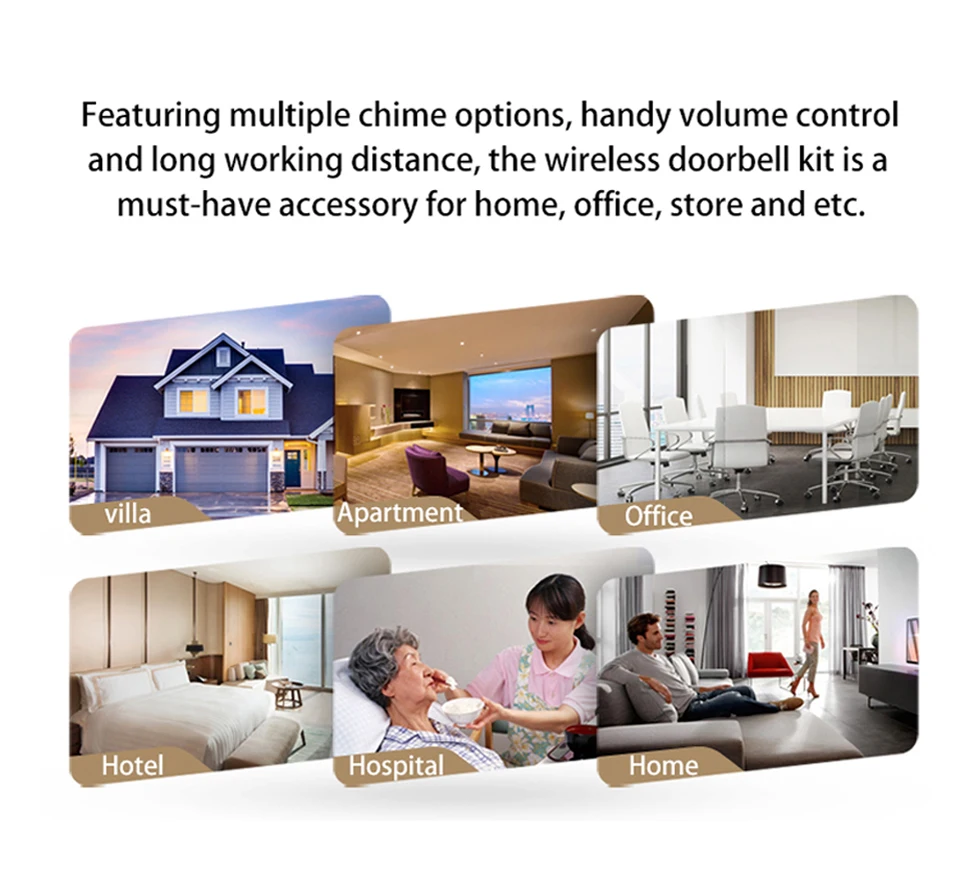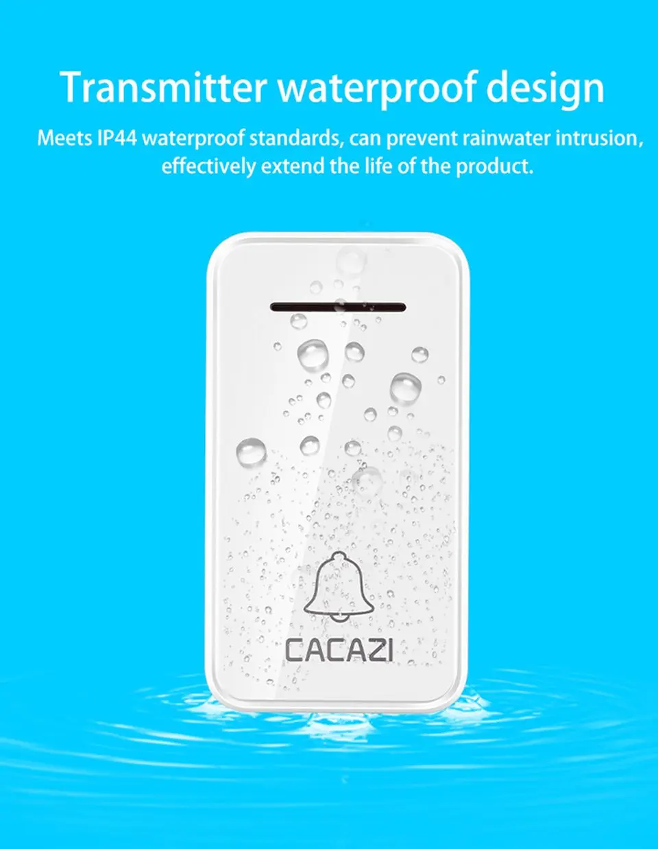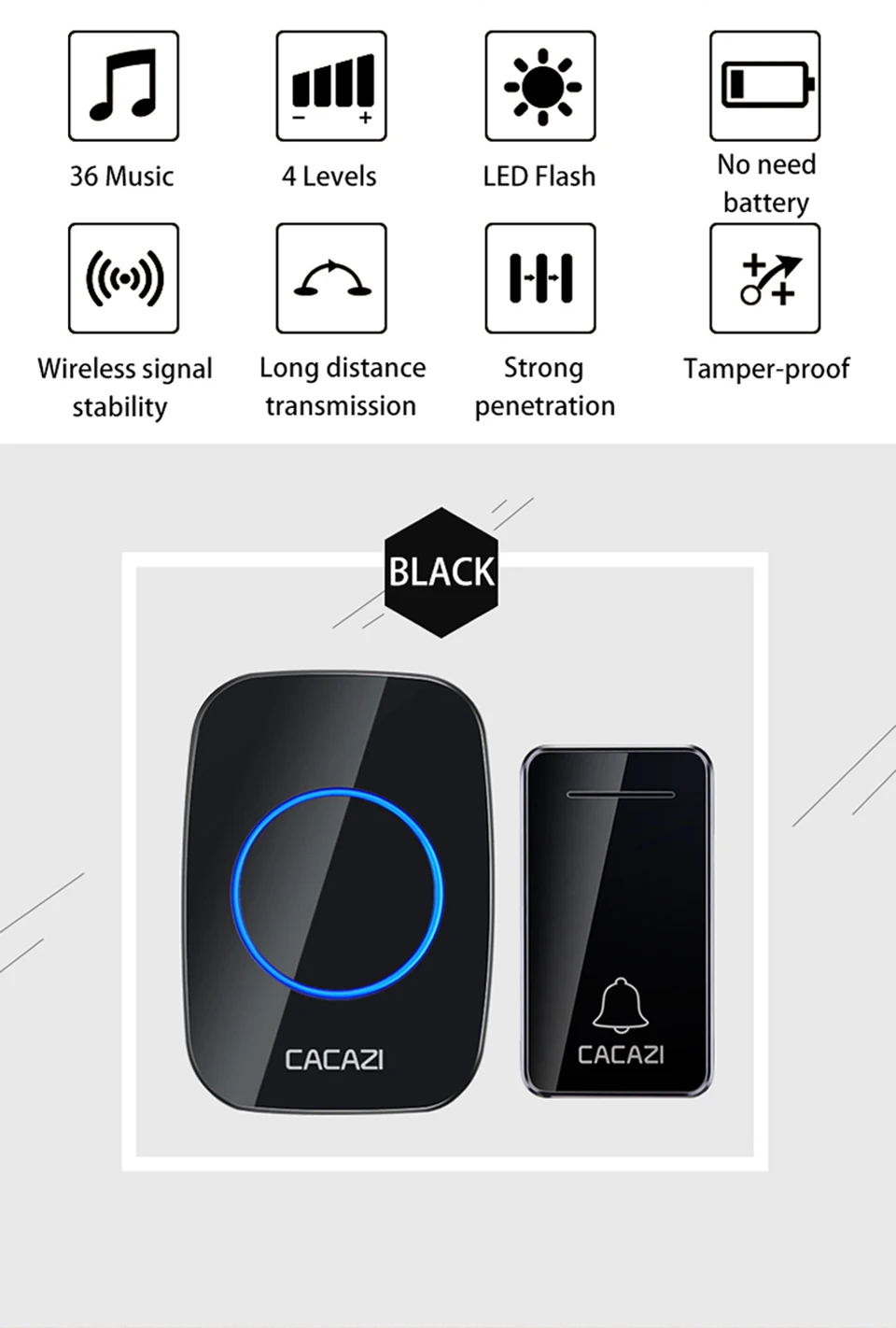 1. Нажмите кнопку, супер обучающий код может свободно научиться сочетать, может быть неограниченным подходящим приемником. 2. Если несколько кнопок соединены с одним или несколькими приемниками в одной системе, каждая кнопка может быть установлена на другой мелодии звонка. 3. Функция отключения памяти: Включите питание снова после выключения питания, не нужно повторно регулировать и блокировать мелодию звонка. 4. Вместо использования батареи, кнопка преобразует кинетическую энергию в электрическую и посылает сигнал при нажатии. 5. Передатчик может нормально работать в снежной или высокой температуре окружающей среды, водонепроницаемый и пыленепроницаемый. 6. Напряжение приемника: 110-220-240в. 7. Расстояние приема: 200 метров на открытой местности. 8. На беспроводной сигнал будут влиять препятствия. Чем больше препятствий, тем серьезнее потеря сигнала. 9. Приемник доступен в различных вилках, штепсельных вилках США/ЕС/Великобритании и адаптерах Австралии, подходит для большинства стран. 10. Приемник имеет 36 мелодий на выбор, и громкость составляет 20-80 дБ в 4 уровнях. 11. Просто подключите приемник к электрической розетке, кнопочный передатчик может быть приклеен к двери с помощью клейких лент. 12. Размер кнопки: 80*44*21 мм 13. Размер приемника: 95*65*20 мм Примечание: Кнопка не может быть размещена на железной двери, потому что это будет мешать сигналу. Если приемник не звонит при нажатии кнопки после получения дверного звонка, Пожалуйста, подключите дверной звонок.