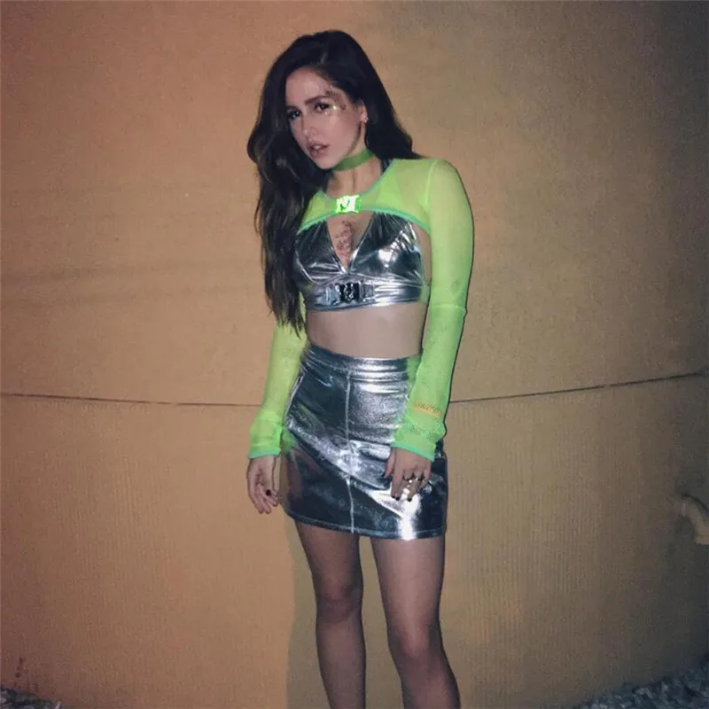 Женская летняя сетчатая Прозрачная Футболка с длинным рукавом, вечерние топы, закрытые футболки