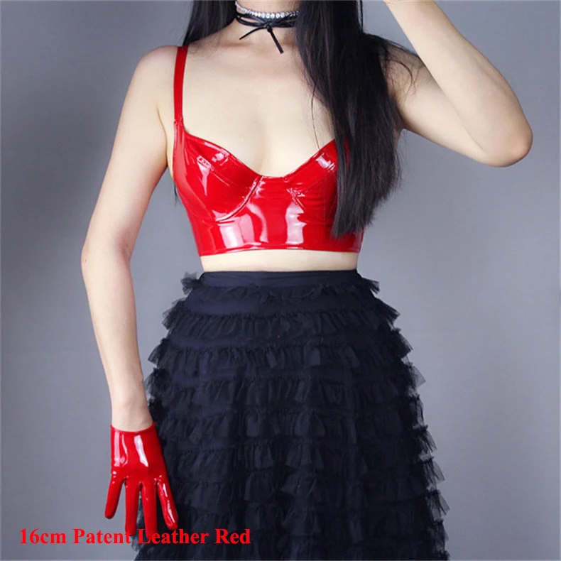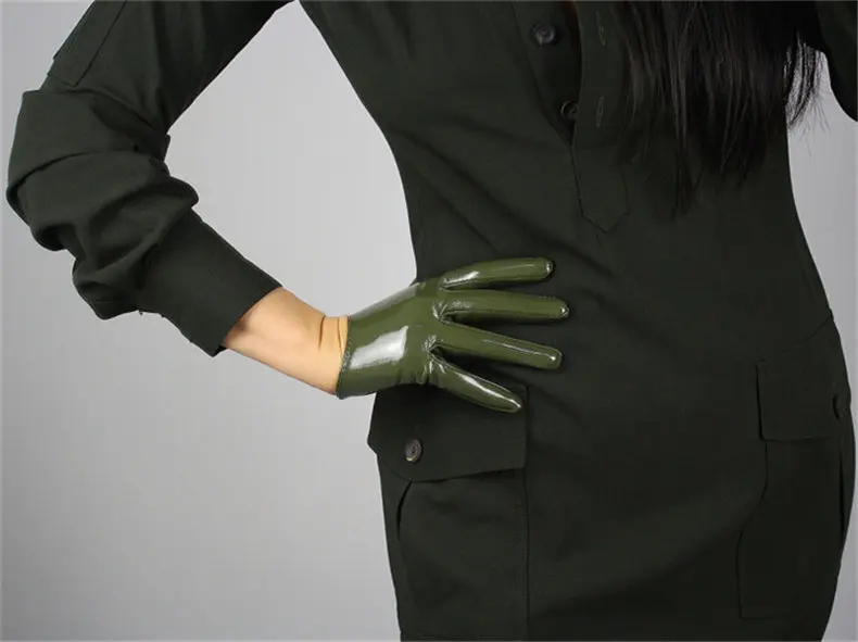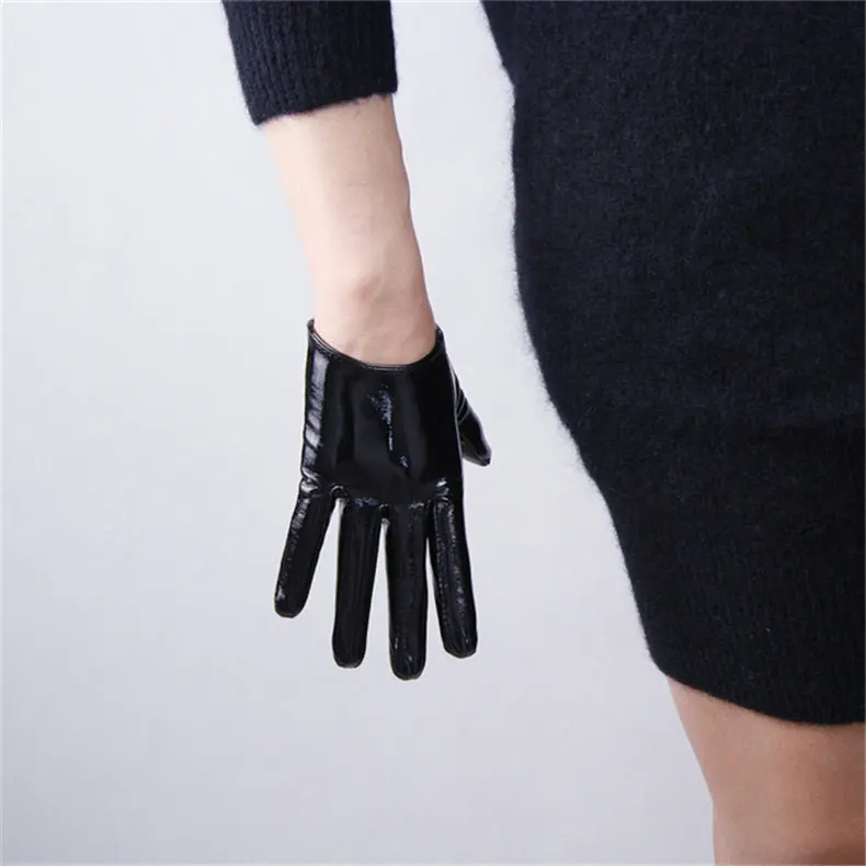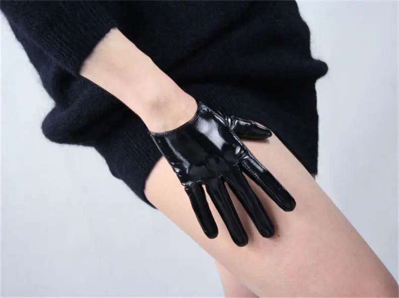 Короткие перчатки из лакированной кожи 16 см, яркие, белые, черные, красные, кожаные, зеркальные, зеркальные, Яркие Кожаные женские перчатки WPU117