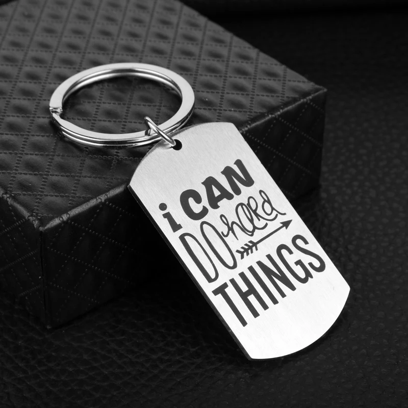 Dogtag I Can Do Hard Things Key Chain Stainless Steel Keychain Accessories Pendant Key Ring Charms Keychains for Ladies Material: Stainless SteelColor:As the pictureSize:2.8 x 5 cmWeight:18.6 gPackage: 1pc keychain in one opp bag Occasion:Birthday,Anniversary,Mother's Day,Father's Day,Valentine's Day,Thanksgiving Day,Christmas Day and so on. Suitable for Most Women,Ladies,Girls ,Men,Boys to Wear - As a Great Gift for Your Lover,Family,Friend and Coworker.