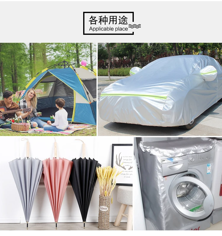 Fabric Item:size 1*1.5 meter width 190Tpolyester taffeta lightweight fabric silver coating fabric for car cover and tent waterproof fabric