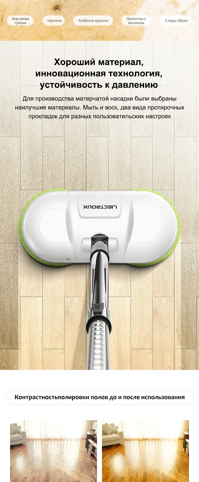 Свой новаторский дизайн совмещает 2 различных элемента для того чтобы сделать ваши полы безупречными путем mopping и полировать. Нажмите кнопку и сделайте ваши полы блестящими и чистыми.
