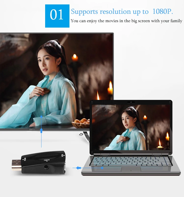 Этот продукт представляет собой портативный Преобразователь HDMI в VGA, вы можете конвертировать HDMIdigital сигнал в VGA аналоговый сигнал. он может совместим с устройством, которое выполняет функцию вывода HDMI, например PS3, Xbox360, Mac Mini, laptop, HD телеприставки, и совместим с устройствами VGA, такими как HDTV, монитор, проект и т. Д. благодаря аудиокабелю вы можете не только наслаждаться изображением higt defination, но и высоким качеством звука. Упаковочный лист: 1 * адаптер HDMI-VGA Аудиокабель 1*3,5 мм Примечание: Этот конвертер HDMI-VGA не может поддерживать двунаправленное преобразование.
