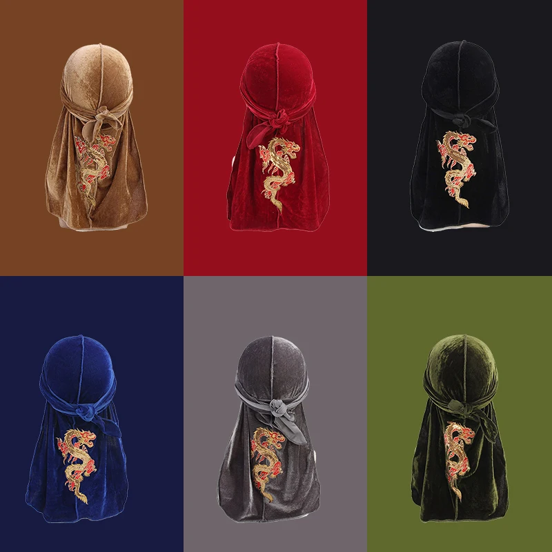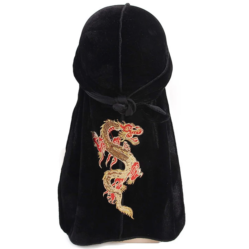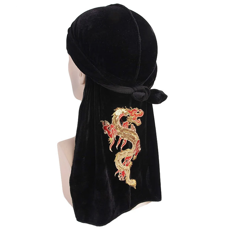 Unisex Silky Durag Bandana Hat hip hop headwrap Bandanas Doo DU-RAG Long Tail velvet