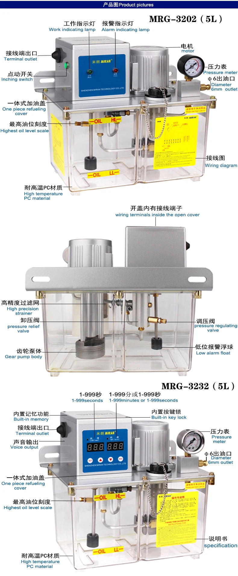 Miran, бесплатная доставка, MRG-3232-500XB 5л, самоконтроль, масло/смазка, смазочный насос, электрический смазочный насос, смазочный насосС звуковым сигналом и механизмом снятия давления