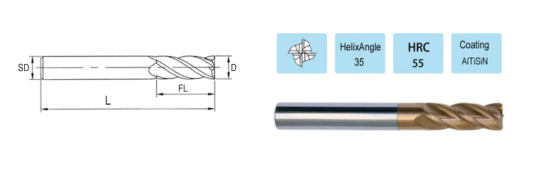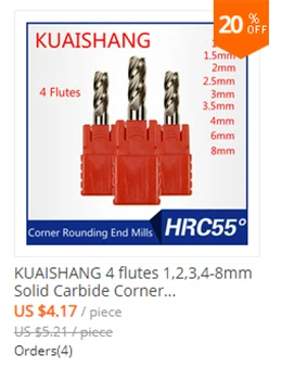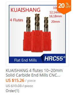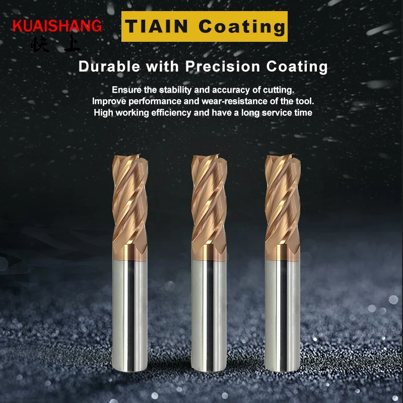 Бренд: kuaishang Материал: Вольфрам сталь Тип конца: плоские концевые фрезы Высокая отключающая способность: 55 градусов Покрытие: TiAIN Канавки: 4-флейта Страна/регион производства: Китай