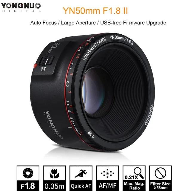 YONGNUO YN50mm F1.8 объектив YN50mm F1.8 II объектив EF 50 мм для Canon Большая диафрагма Автофокус линзы для 700D 750D 800D 5D Mark II IV 10D