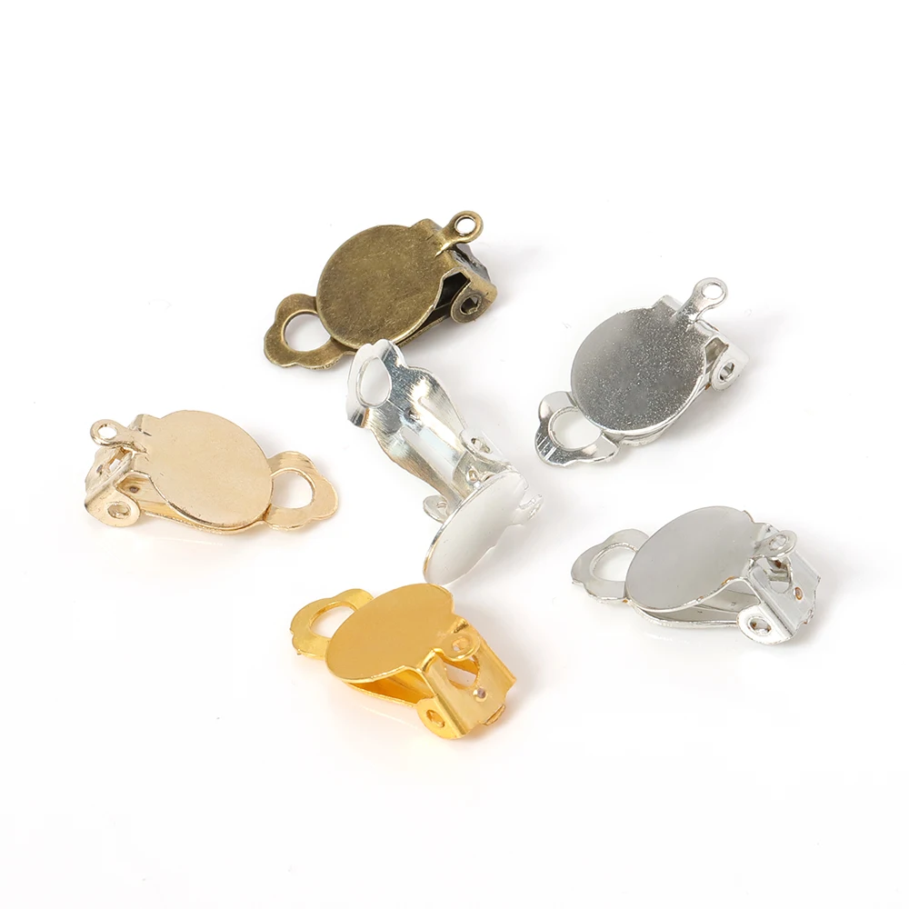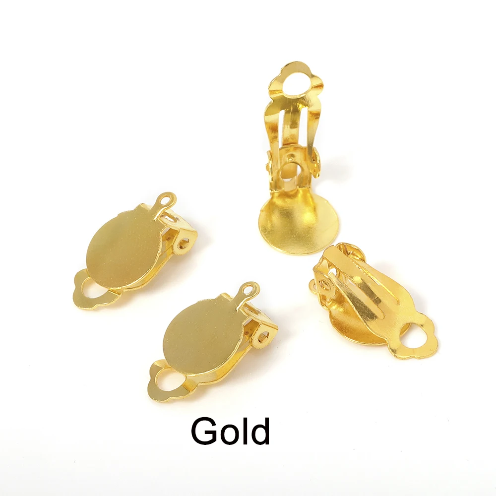 50 шт., высокое качество, позолоченные сережки с металлическим зажимом для ушей, пустая/установочная основа, подходит для стеклянных кабошонов 10 мм, фурнитура для самостоятельного изготовления компонентов
