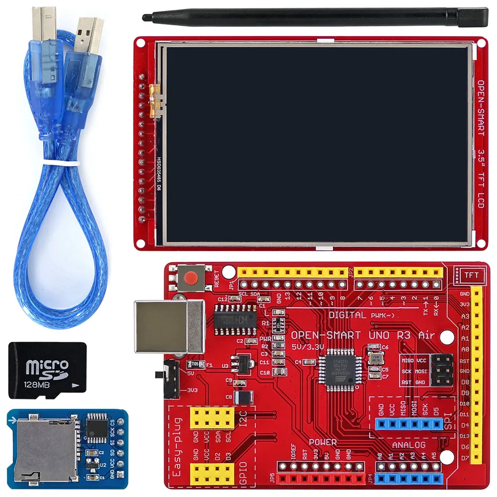 В комплект входит простая вилка UNO R3 Air development board, которая совместима с программой UNO R3, расширительные щиты, IDE.