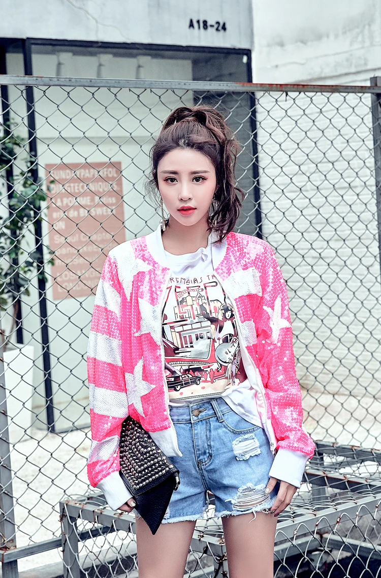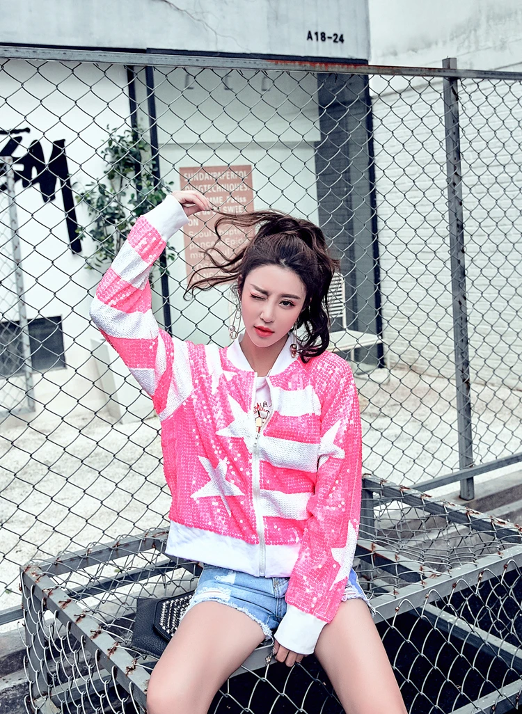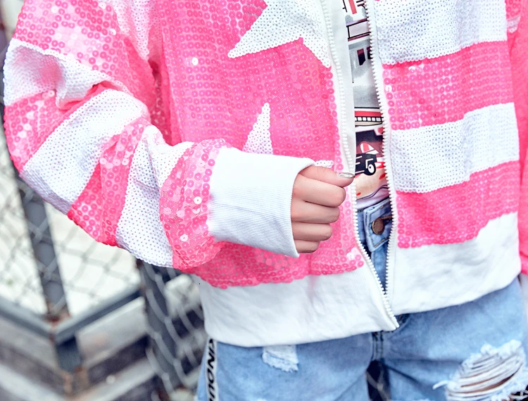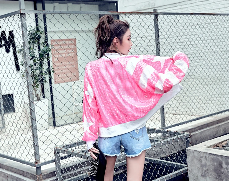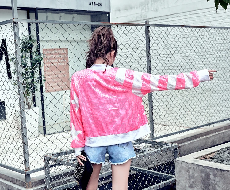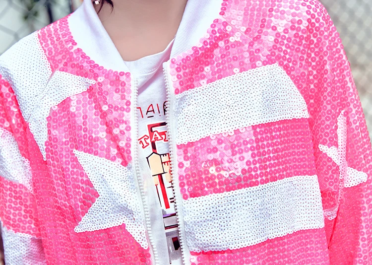 Vefadisa, базовая Женская куртка с пайетками, розовая куртка со звездами, Весенняя бейсбольная куртка, пальто с длинными рукавами для девочек, ZLD382