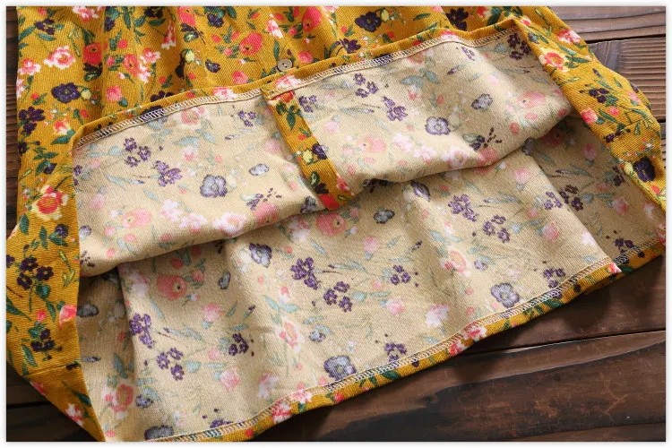 Женское платье с цветочным принтом Mori girl, желтое вельветовое платье с длинными рукавами, весна 2019