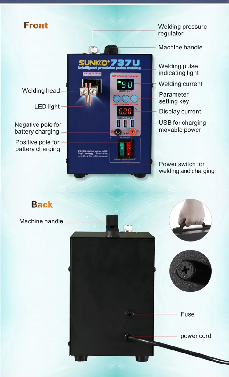 SUNKKO737U мини сварочный аппарат батарея Сварочный аппарат 18650 литиевая батарея точечная сварочная машина