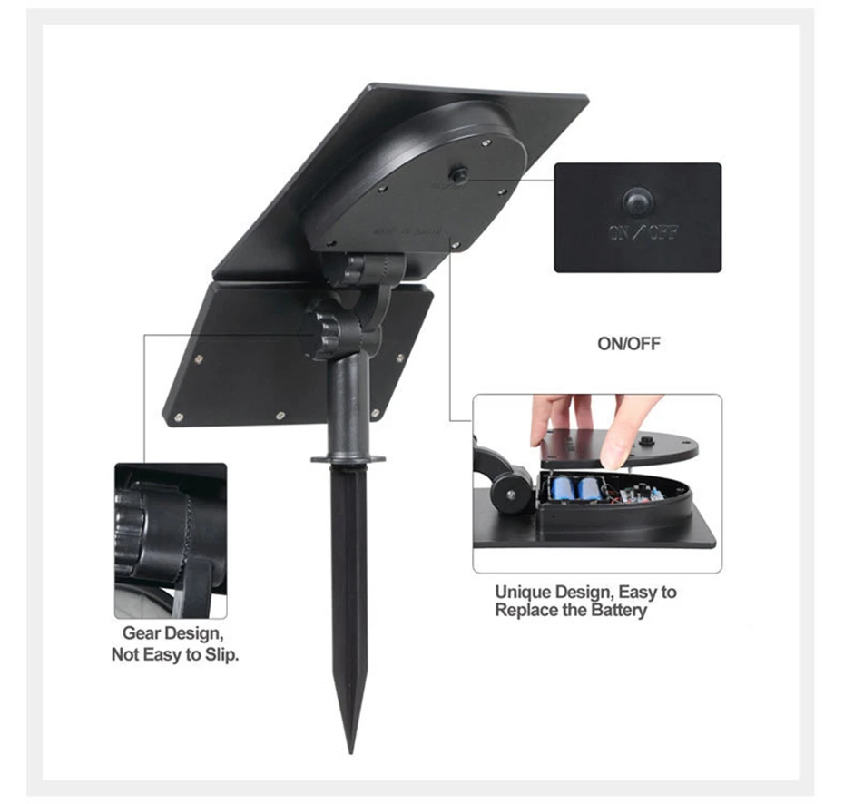 Питание от солнечной энергии, не требуется Питание переменного или постоянного тока.Экологически чистые продукты, высокая скорость преобразования энергии.Можно переключать вручную с помощью включения/выключения.Легкая установка, регулируемый угол освещения.Его можно широко использовать для освещения и украшения дорог, дворов, садов, бассейнов, пруда и т. Д. Технические характеристики:Батарея: 3,7 в/2000 мАч 18650 # литиевая батареяIp-рейтинг: IP44Время работы: более 8 часов (полностью заряжен/более 8-9 часов) Примечание:1. Поскольку эффект зарядки солнечной панели зависит от солнечного света, светодиодный свет зависит от погоды, сезонов, мест и т. Д.2. Заряжается только при включении кнопки.3. Не ударяйте продукт, чтобы не наносить необратимый ущерб.4. Кол настолько остро, что вы должны быть осторожны при его использовании. И не позволяйте детям играть с ним.
