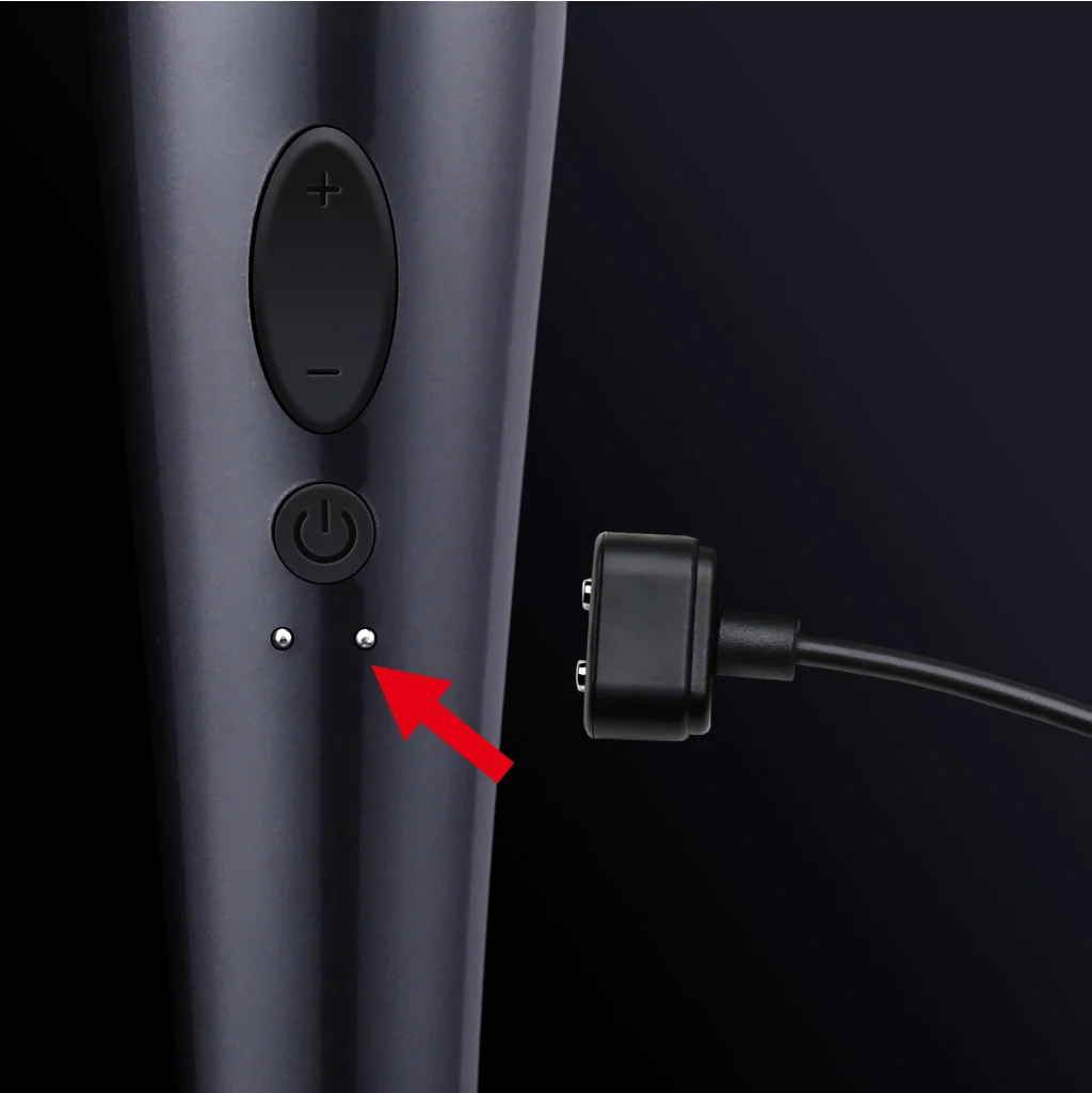 Удобно прикрепить магнитную головку к металлическим пятнам под кнопкой питания и зарядить.