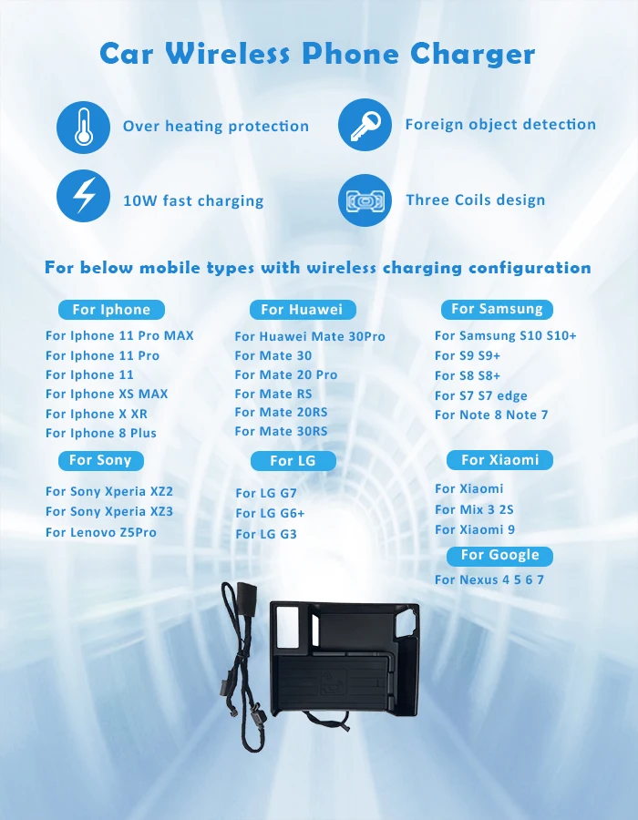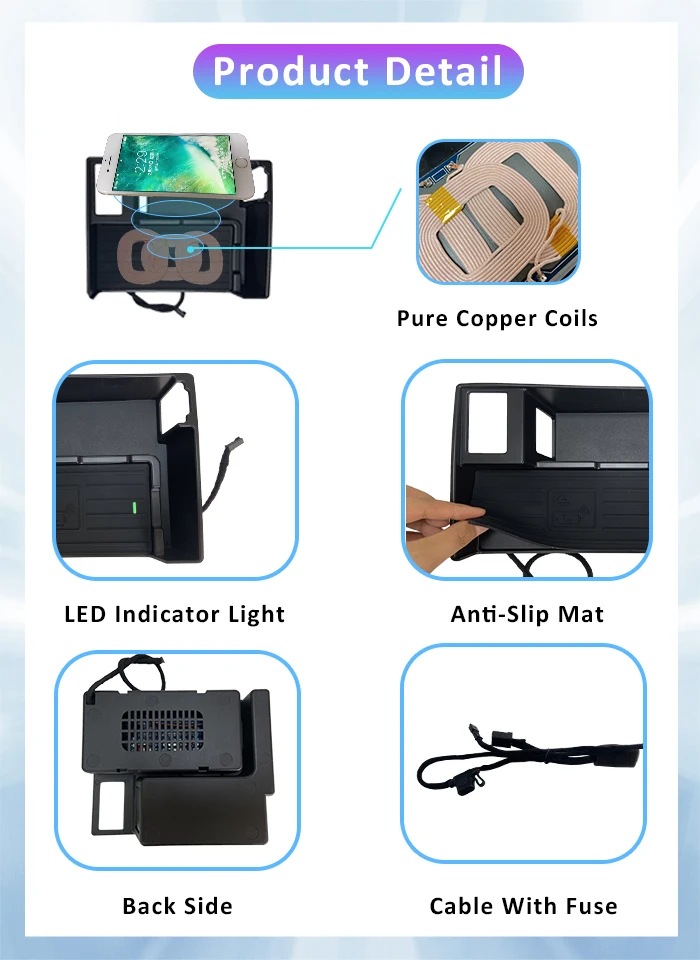 Подходит для ниже транспортные средства: для Audi A6 C7 A7 2014 2015 2016 2017 Выходная Максимальная мощность: 10 Вт Максимальный выходной ток: 1.5A Рабочая температура:-20-+ 70 градусов Цельсия Установка: Извлеките центральный пульт и подключите зажигалку. Не стесняйтесь связаться с нами, если вам нужна установка veido Гарантия: 1 год Функция и преимущества: 1. С противоскользящим ковриком 2. Светодиодный индикатор светильник 3. Катушки из чистого Купера 4. Кабель с предохранителем Подходит для мобильного телефона с функцией беспроводной зарядки QI, если без такой функции, необходимо добавить беспроводной приемник Примечания: 1: лучше найти магазин для ремонта автомобиля, чтобы избежать возможных проблем с безопасностью 2: скорость зарядки зависит от режима работы телефона. 3: убедитесь, что на автомобильном зарядном устройстве нет магнита или металла 4: безопасное вождение, проверьте мобильный телефон или зарядную платформу, опасна во время вождения 5: убедитесь, что корпус телефона имеет обычную толщину. Или это повлияет на зарядку, если слишком толстый, не снимая корпус