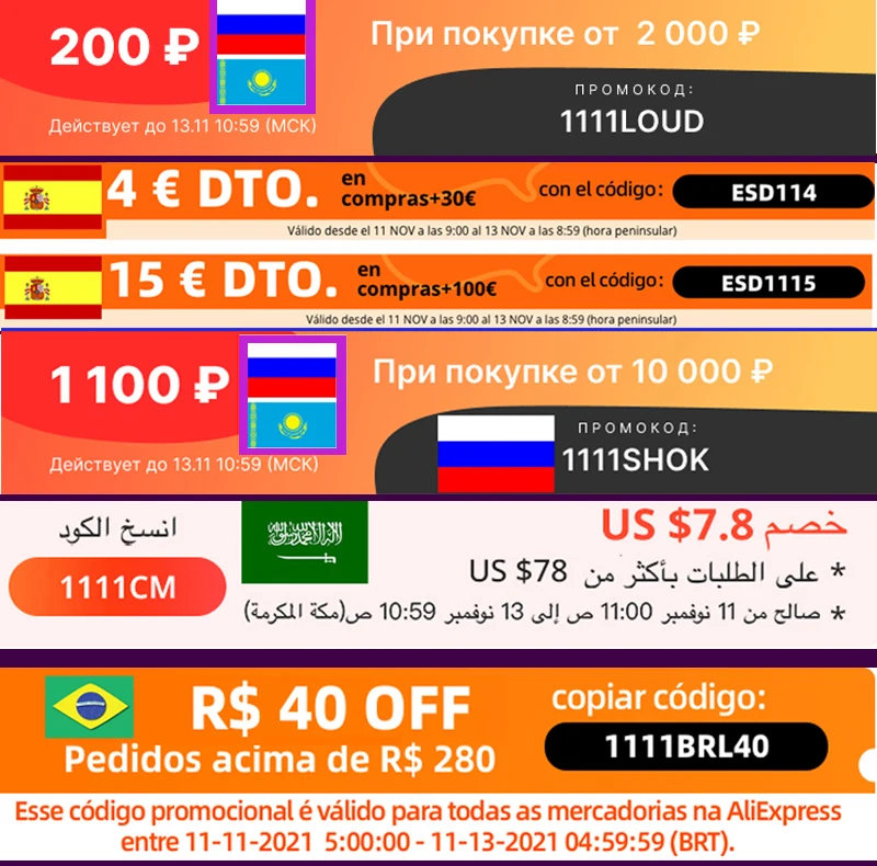 Дорогие друзья из следующих стран. Когда вы делаете заказ в течение 11,11-11,12, вы можете использовать соответствующий код скидки. Надеюсь, все в порядке. Желаю вам счастливой жизни. Большое спасибо.