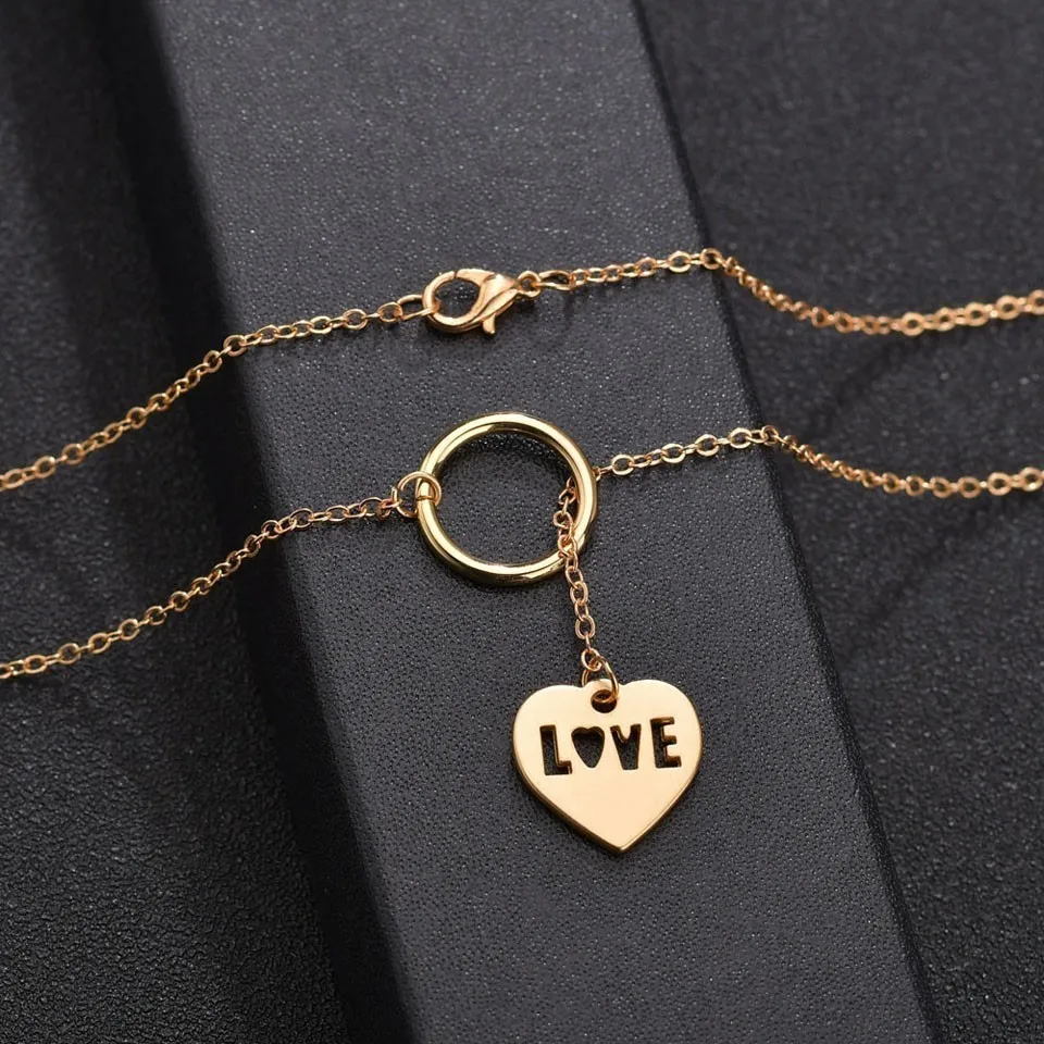 YANGQI золото двойное сердце кулон ожерелье для женщин Круглый Круг ожерелье Трендовое очарование ювелирные изделия женские подвески в романтическом стиле ожерелье