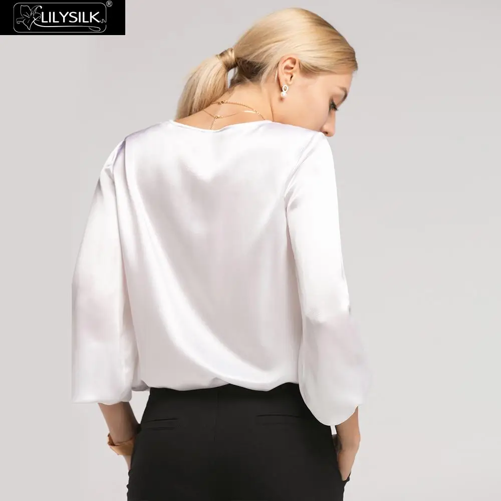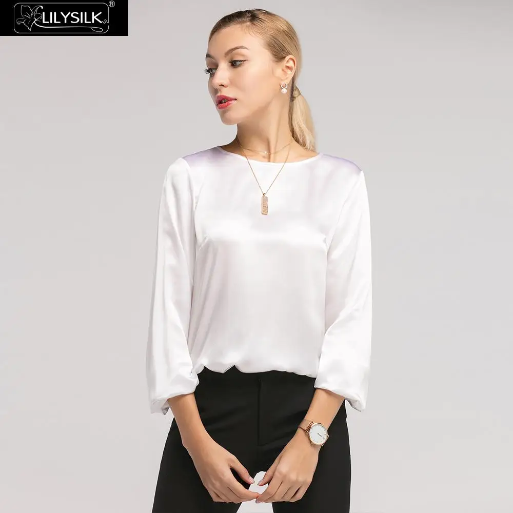 Базовая Блузка; Базовая Блузка с круглым вырезом, длинными рукавами, эластичными манжетами и высоким низким подолом. Незаменимый гардероб с гладким и мягким прикосновением. 100% из шелкового шармеза, глянцевая, утонченная вязка и простая в уходе Свободный крой Эластичные манжеты Международная сертификация: OEKO-TEX Стандарт 100, экологически чистый и нетоксичный