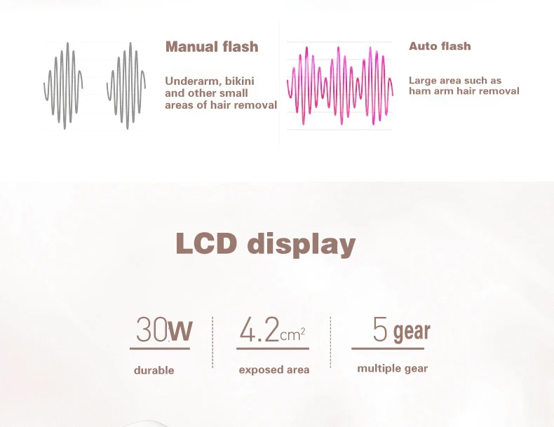 6. Быстрая и большая площадь обработки: 4,2 квадратных см размер пятна не слишком большой или не слишком маленький для любого изгиба тела, высокая эффективность и быстрая скорость, которая занимает всего несколько минут, чтобы удалить перекрывающиеся волосы, которые трудно для традиционного метода удаления волос
